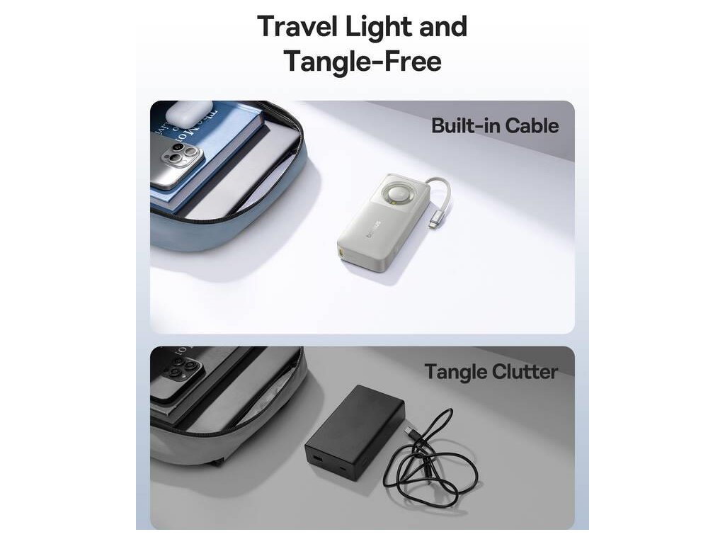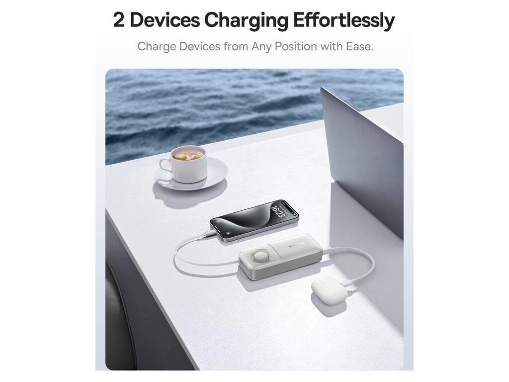 Jednou z jedinečných výhod Powerbanky Baseus Free2Pull je možnost nabíjet dvě zařízení současně. Díky vestavěnému USB-C kabelu a USB-C portu můžete nabíjet telefon i tablet zároveň, což je ideální pro časté cestovatele. Už si nemusíte vybírat, které zařízení nabijete jako první – nyní můžete nabíjet obě současně.