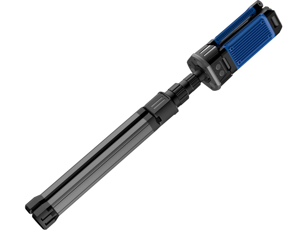 Snadno ho složíte i rozložíte, a pomocí vestavěného stativu ho lze nastavit až do výšky 1,7 metru. V nouzové situaci může fungovat jako powerbanka s výstupem USB-A.