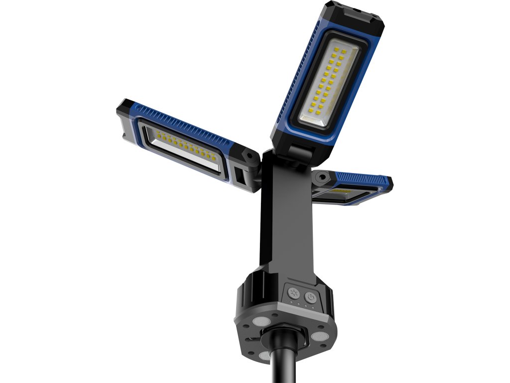 Pracovní světlo Viking B69571Viking B69571 je výkonné a všestranné pracovní světlo pro náročné podmínky. Díky inovativní konstrukci se třemi rozkládacími křídly poskytuje světlo bez mrtvých úhlů, takže rovnoměrně osvítí celý pracovní prostor.