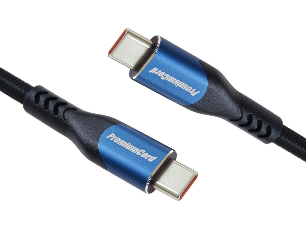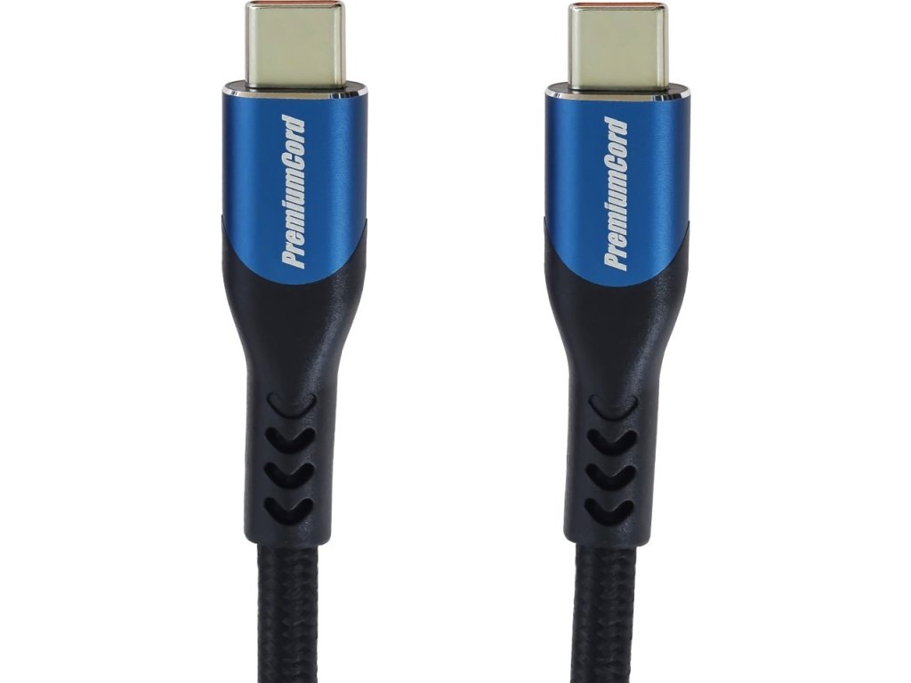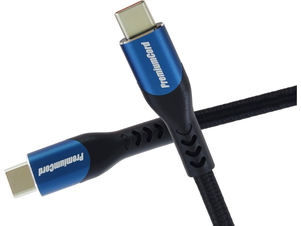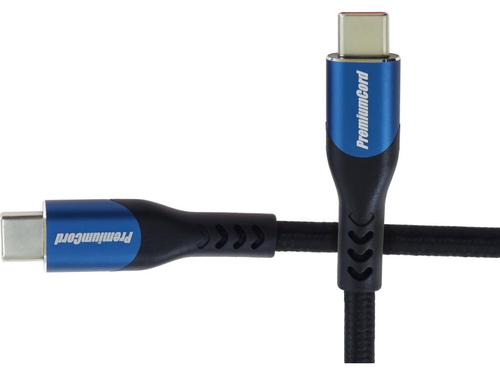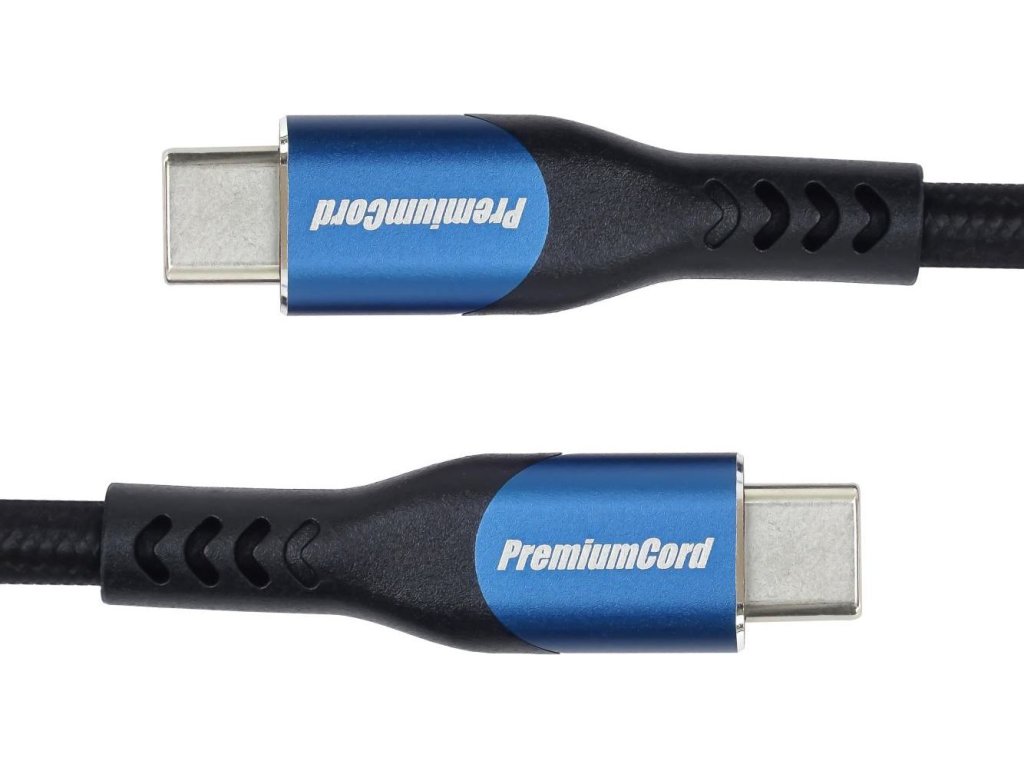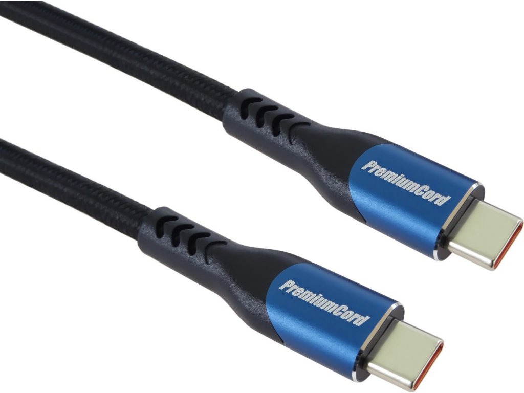 .PremiumCord USB-C kabel ( USB 3.2 GEN 2x2, 5A, 100W, 20Gbit/s ) hliníkové krytky konektorů, bavlněný oplet, 1,5m- První konektor: USB 3.2 typ C samec