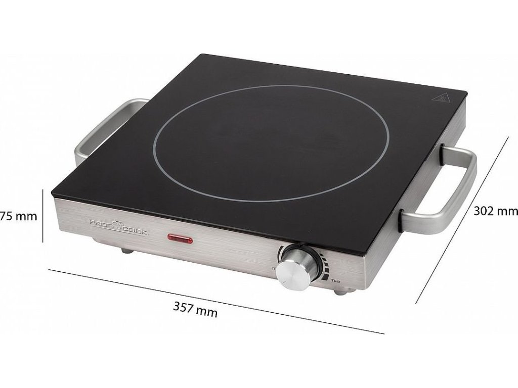 Hladká varná plocha je odolná proti poškrábání a její čištění je velice snadné. Plotýnka je vhodná pro všechny typy hrnců. Teplotu lze plynule nastavit pomocí ovládacího knoflíku z nerezové oceli. O stavu provozu informuje LED kontrolka.