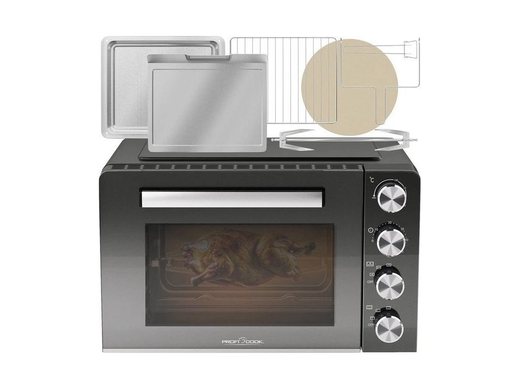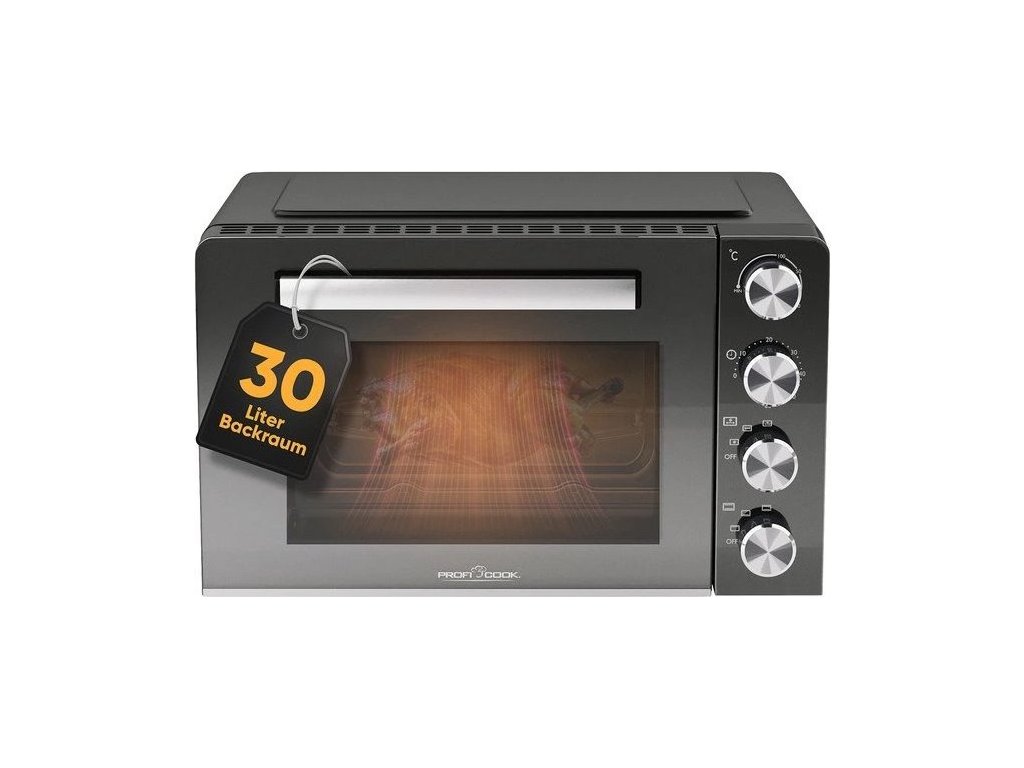 ProfiCook MBG 1277 4 v 1 – Multi trouba s kapacitou 30L,alternativa k vestavné troubě. ideální do malých bytů, chat, chalup atd.Rozmanité spektrum možných kombinací: