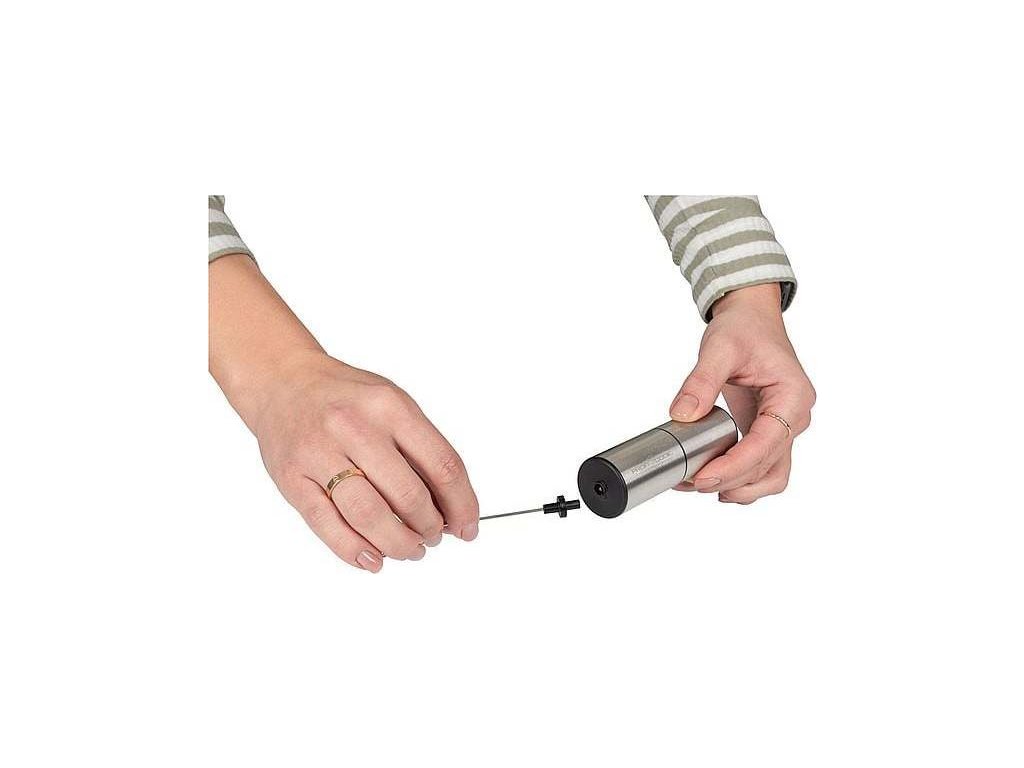 Provoz na baterie (2x 1,5 V AA/UM3) zajišťuje jednoduchou a pohodlnou manipulaci, aniž byste byli omezeni zásuvkou. Baterie nejsou součástí balení, takže doporučujeme připravit si je dopředu.