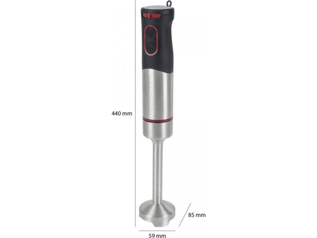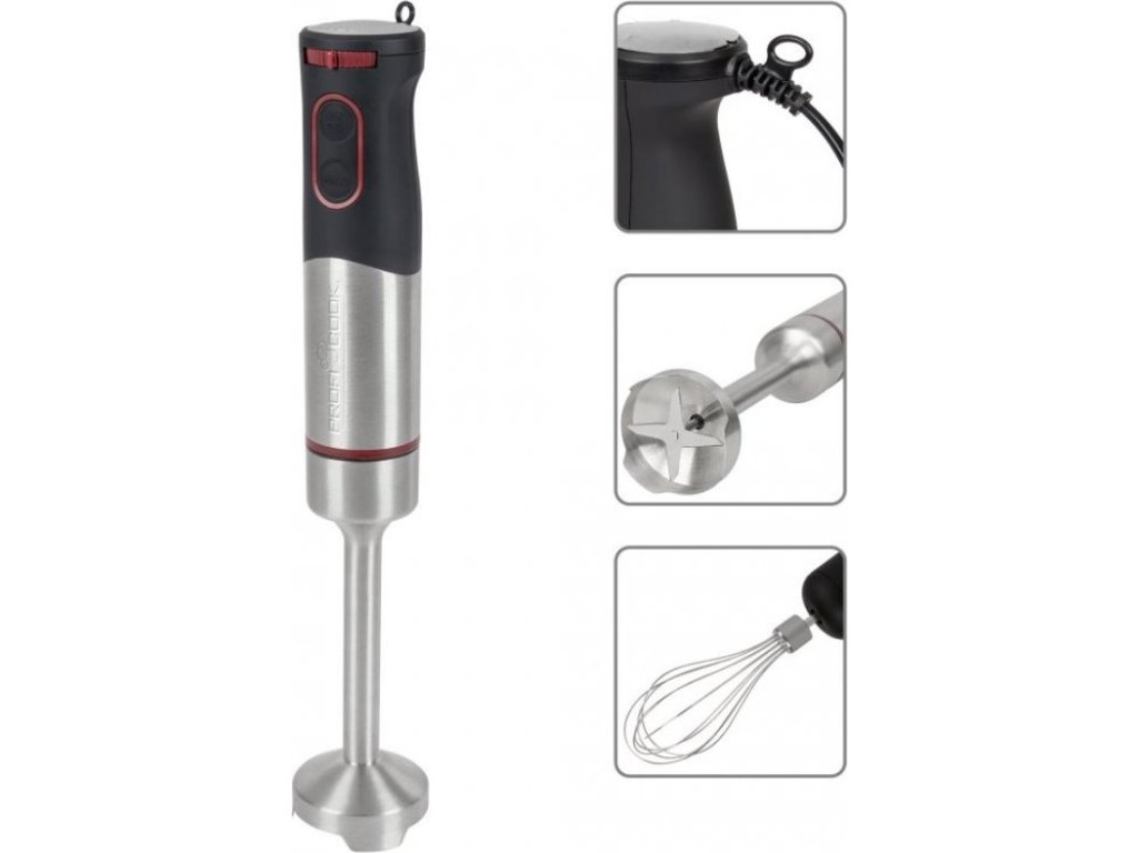 Ponorný mixér ProfiCook SMS 1226 je vhodným pomocníkem do každé kuchyně. Produkt zvládne mixovat všechny studené i teplé potraviny. Přístroj je vybaven tichým stejnosměrným motorem, který zajišťuje silné a bezproblémové mixování a šlehání. Odnímatelná nerezová metla usnadňuje údržbu a čištění mixéru. Očko na zavěšení navíc slouží k pohodlnému uskladnění přístroje.Ponorný mixér vhodný pro mixování a šlehání