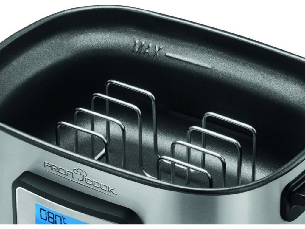 Informace se zobrazují na modře podsvíceném LCD displeji. Teplota lze nastavit v rozmezí 45-90 °C. Doba vaření až na 72 hodin. Objem nádoby, jejíž povrch je nepřilnavý, je 8,5 l.