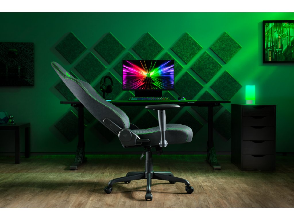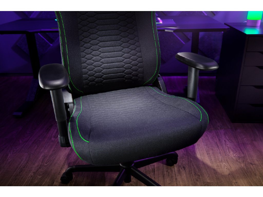 Nastavitelný sklon 152° pro flexibilní polohování sedadla. Opřete se a nastavte si ideální úhel pomocí opěradla, které má nastavitelný sklon až 152°. 2D područky pro optimální umístění paží. S područkami, které lze výškově nastavit a otočit dovnitř nebo ven, budou vaše paže při hraní vždy v přirozené, uvolněné poloze. Čalouněné přirozeně prodyšnými vícevrstvými vlákny si vychutnejte plyšové pohodlí, které je chladivé k pokožce a hladké na dotek.