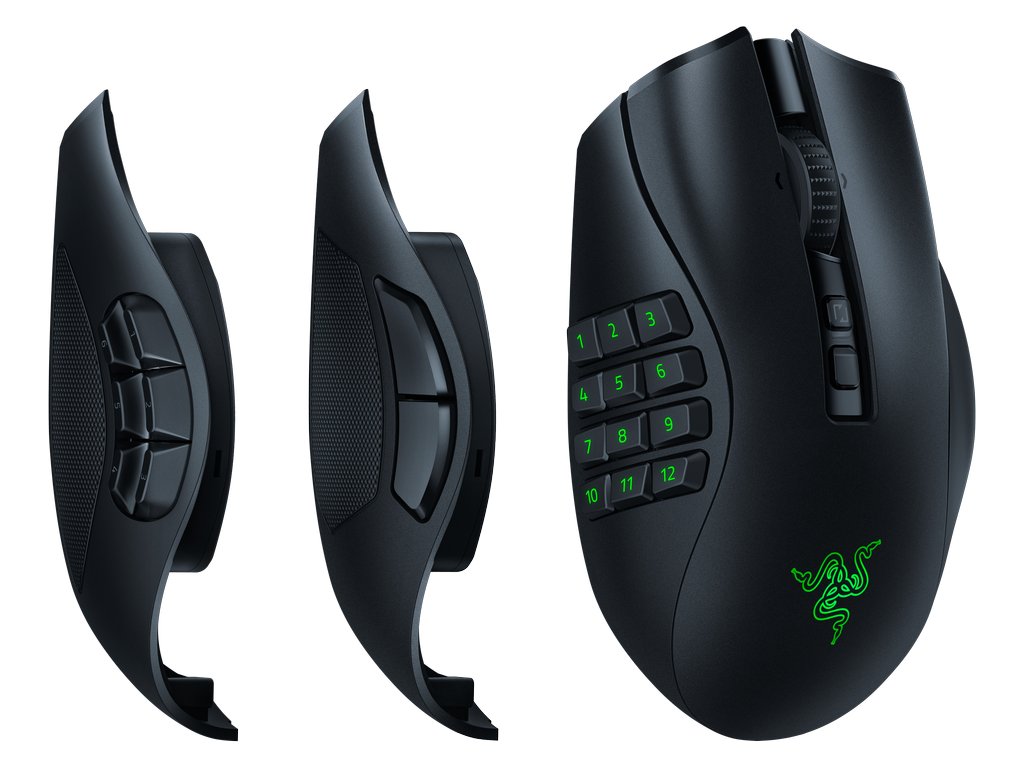 Razer Naga V2 Pro je dodáván se sadou 12, 6 a 2-tlačítkových magnetických bočních desek, které vám umožní přizpůsobit se jakémukoli hernímu žánru s ovládáním až 19+1 programovatelných tlačítek.