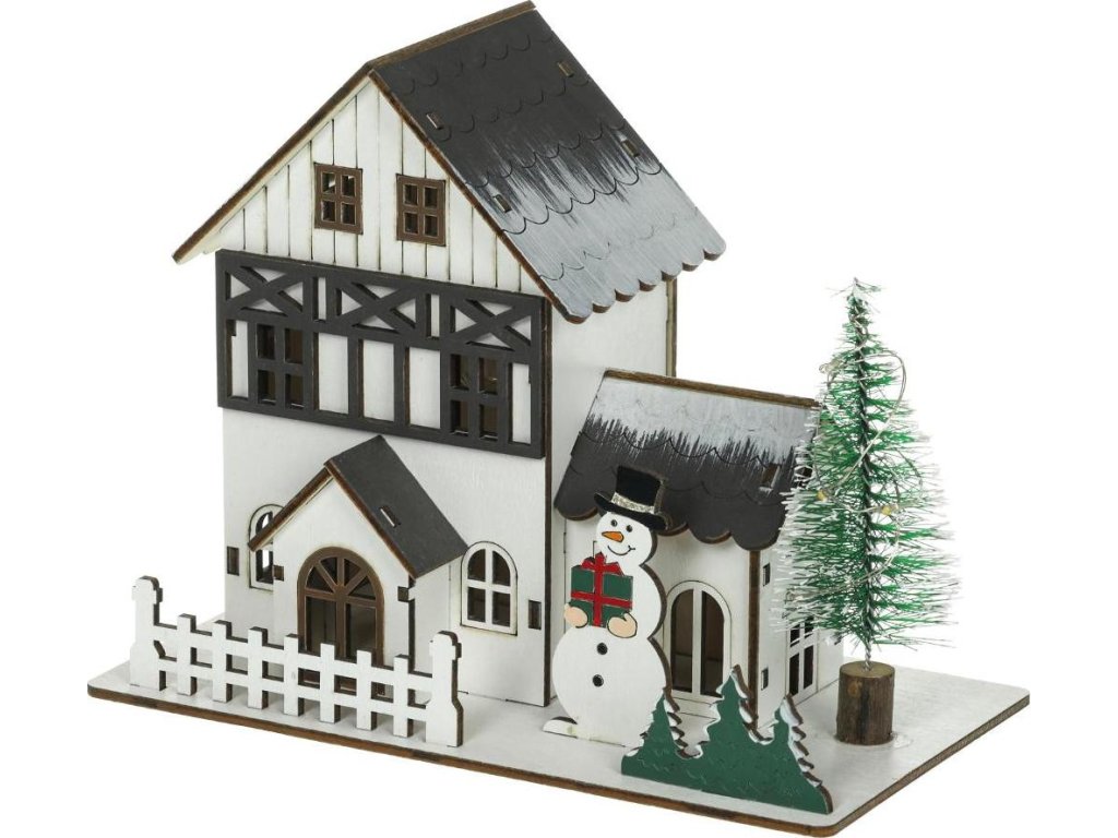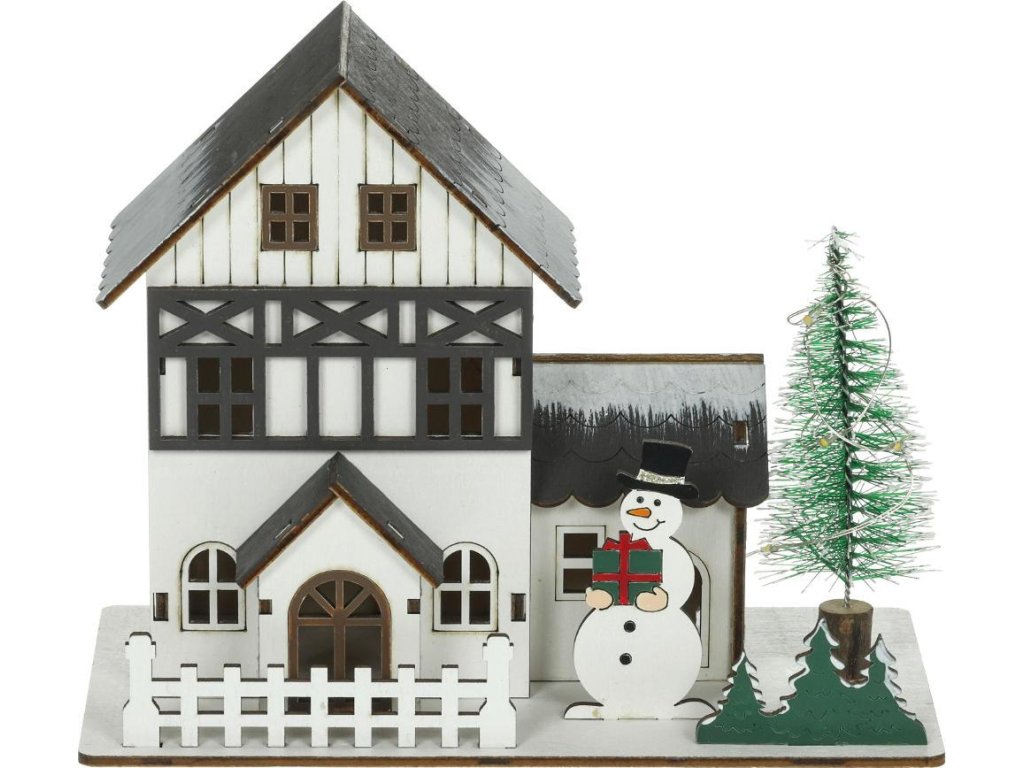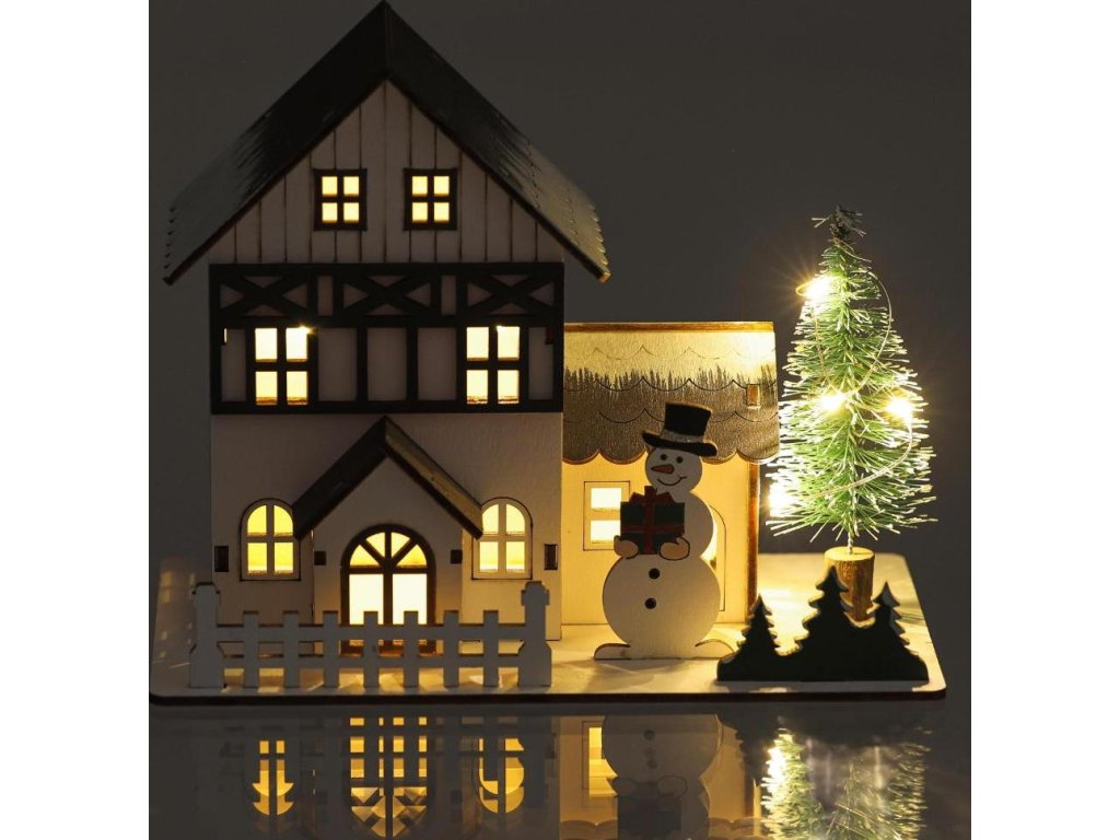 Celkový efekt doplňuje sněhulák a osvětlený stromek