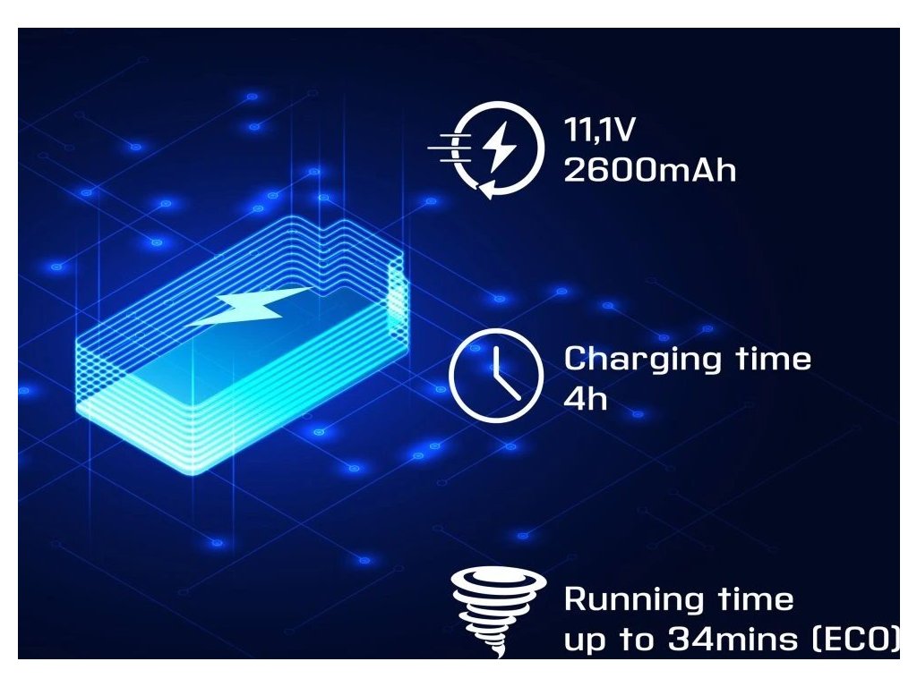 11,1 V lithium-iontový akumulátor s dlouhou životností (2000 mAh)