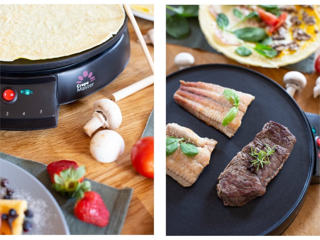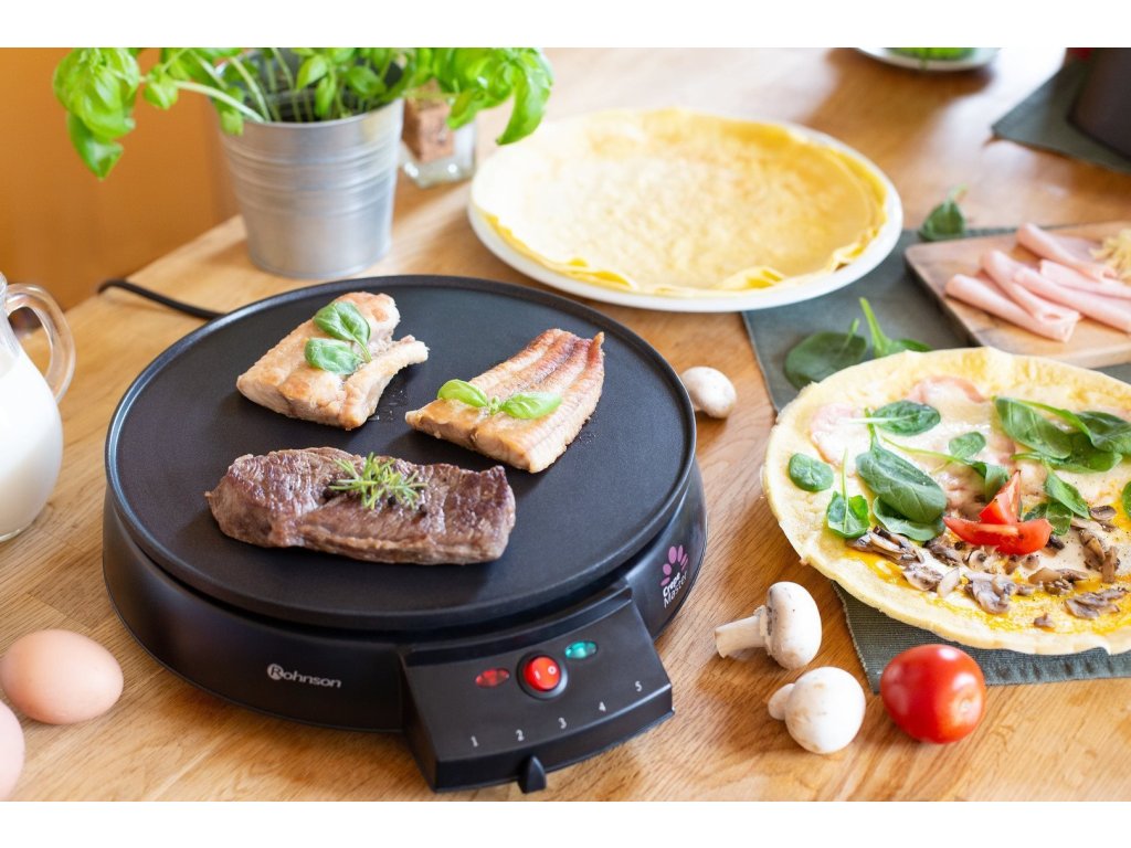 Kromě přípravy palačinek, placek, mexických tortill jej můžete použít i jako gril. Tento kompaktní pomocník zvládne i různá masa, ryby a další dobroty.