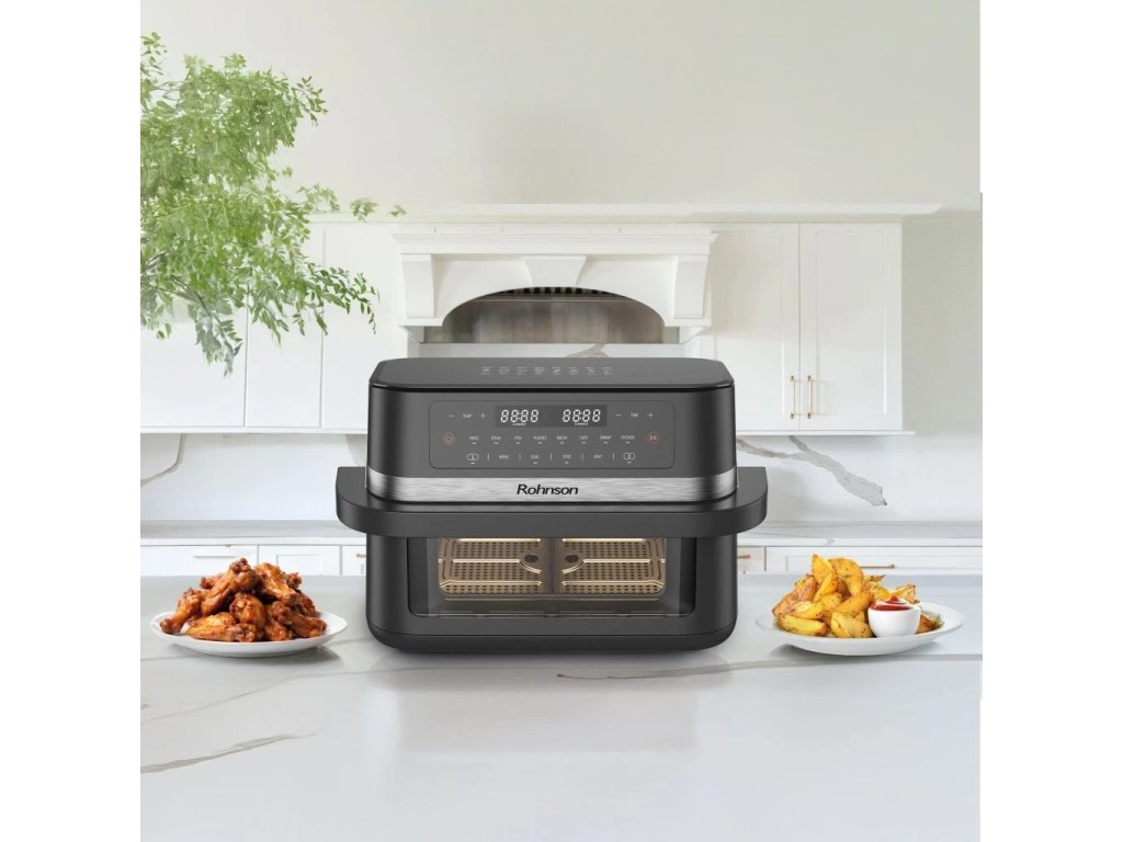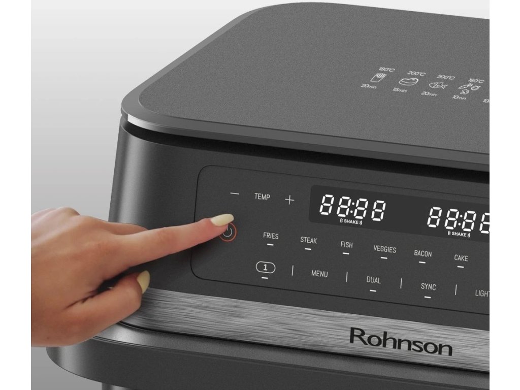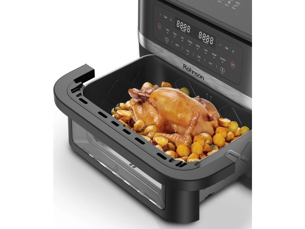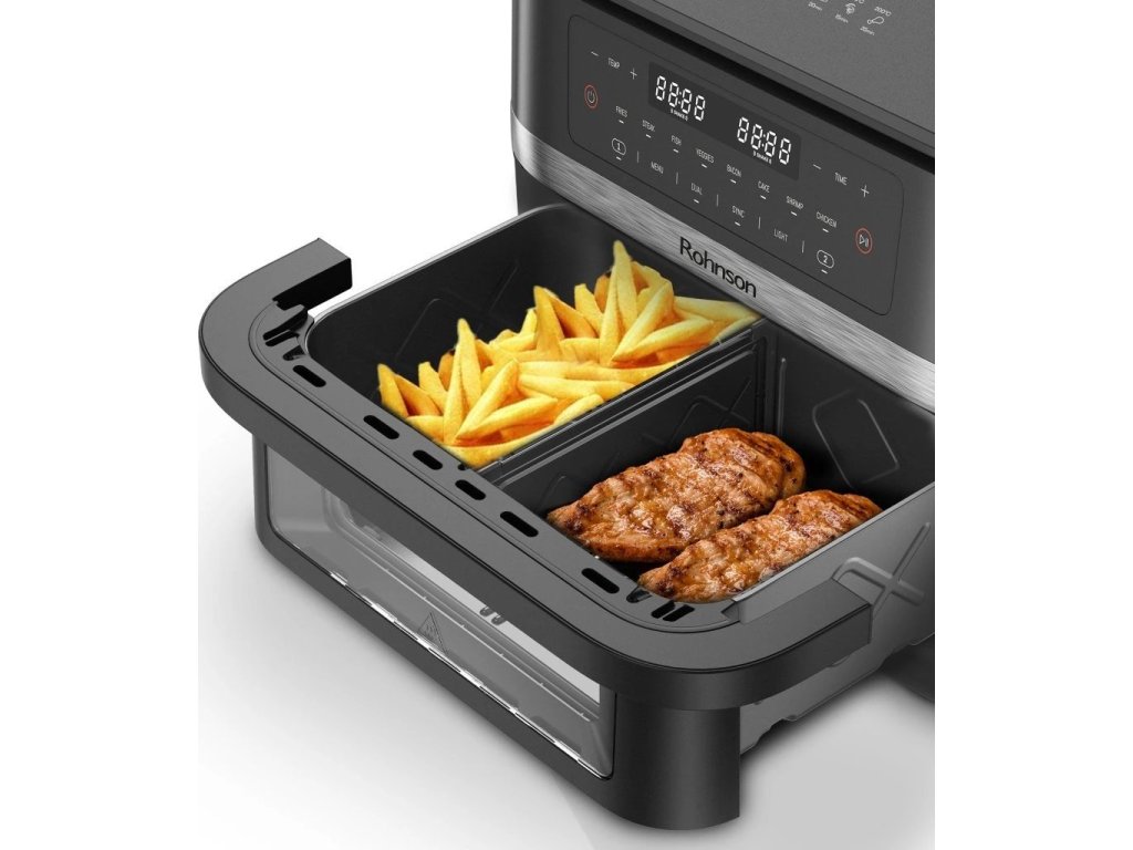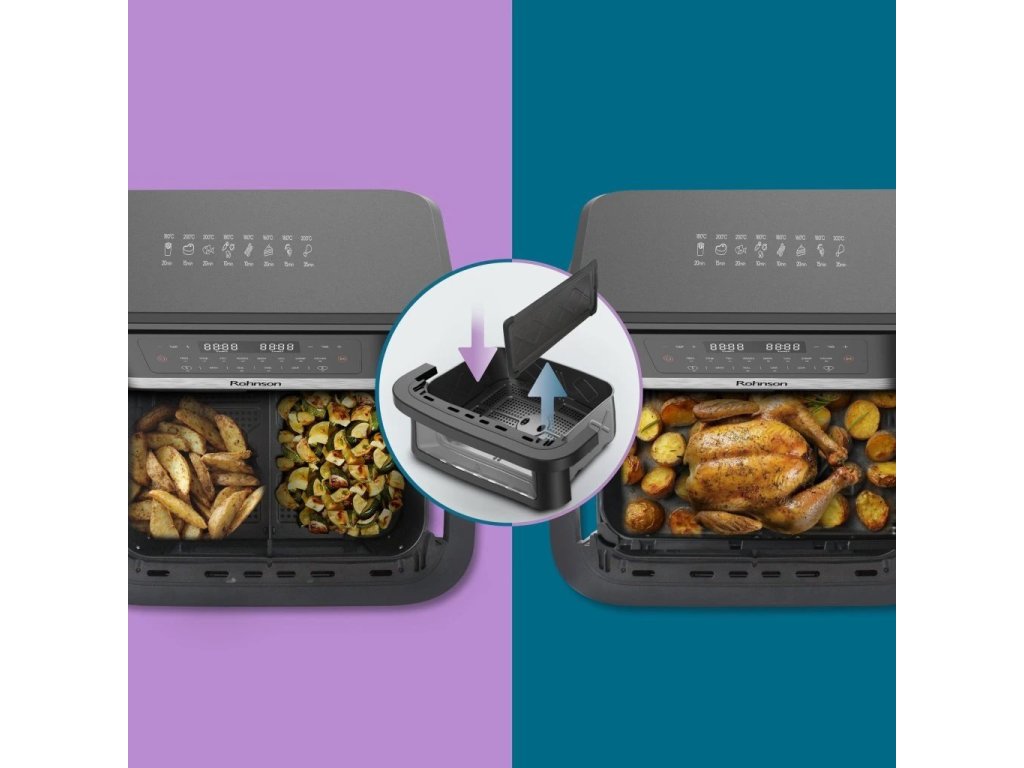 Inovativní horkovzdušná fritéza 2 v 1 s dvouzónovým košemFritování s nízkým obsahem tuku – až o 80 % méně oleje