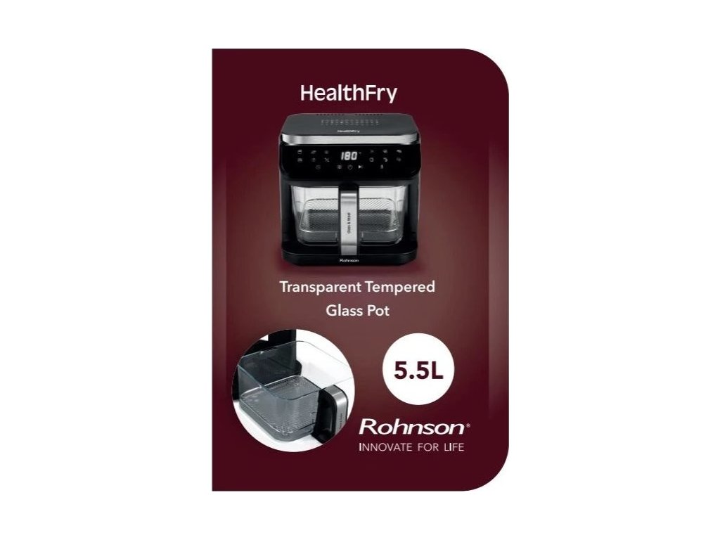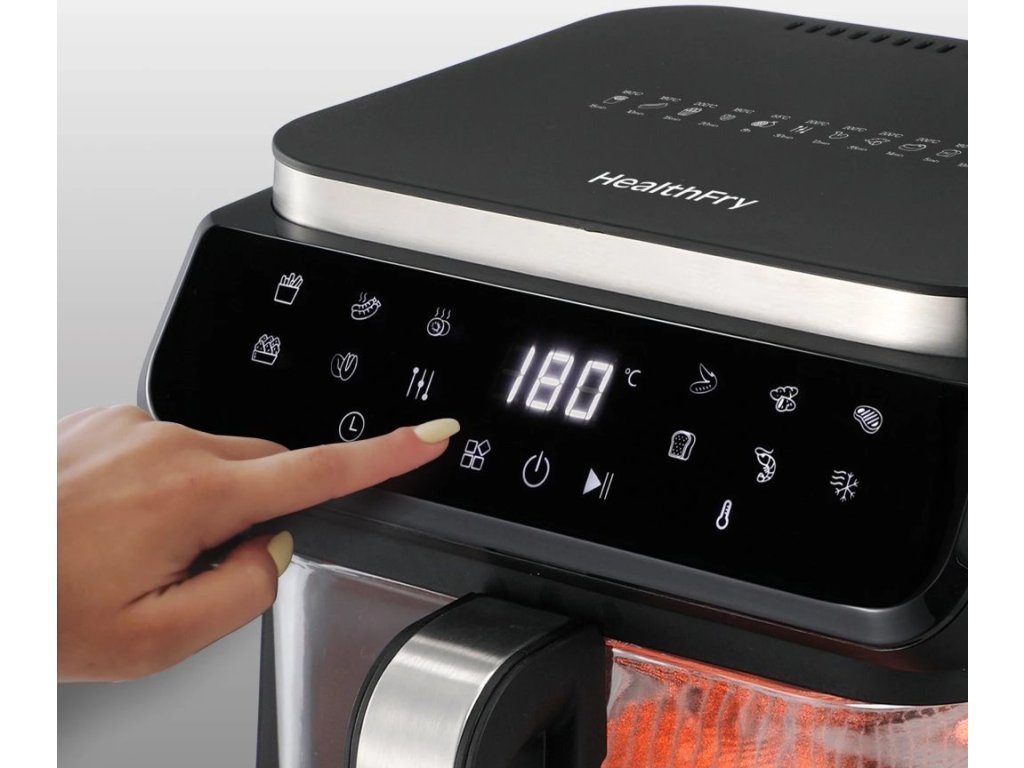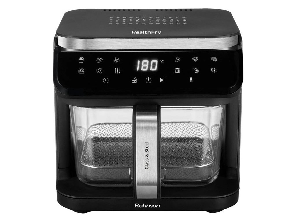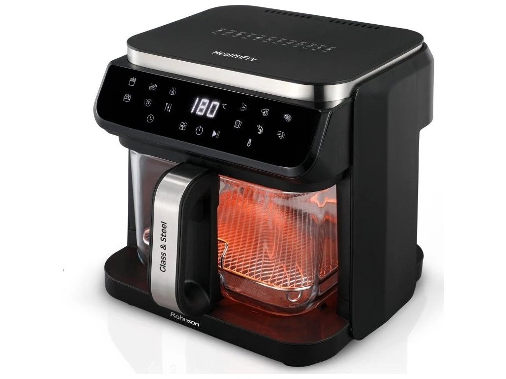 Inovativní design se skleněnou nádobou pro rychlejší a zdravější pečeníSkleněná nádoba a nerezový rošt bez teflonu