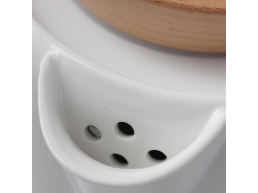 Pevné dřevěné víko se silikonovým těsněním nejen dodává konvici estetickou hodnotu, ale také zajišťuje dokonalé uzavření, zatímco dřevěný přepínač přináší přírodní eleganci do každého kuchyňského interiéru.