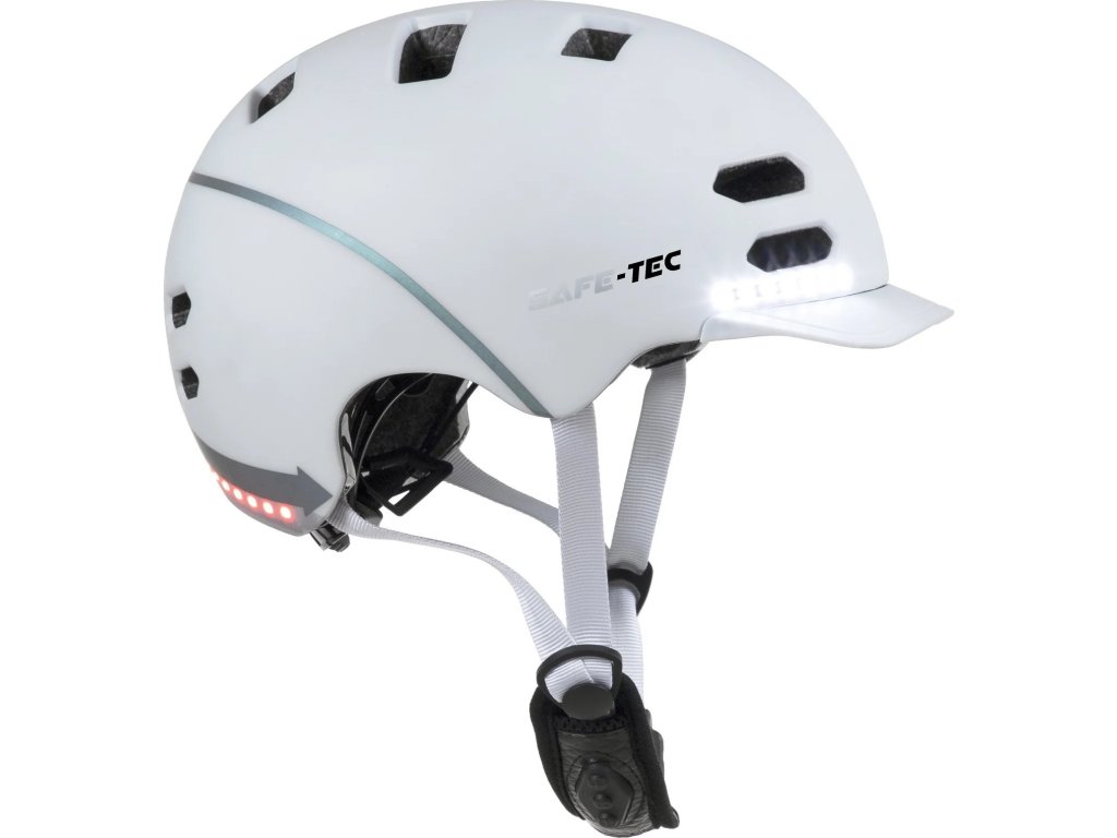 Mezi důležitou výbavu helem Safe-Tec patří LED pásky na přední (bílé světlo) i zadní straně (červené světlo). Moderní LED plní funkci nejen bezpečnostního osvětlení cyklisty (možnost svícení a blikání), ale lze je také využít jako dynamická směrová světla v případě odbočování (oranžové světlo vpředu i vzadu). Ovládání světel se provádí jednoduše pomocí bezdrátového dálkového ovladače, který se snadno upevnění na řídítka díky dodanému držáku. Další bezpečností vychytávkou je funkce pro prudké zabrzdění, kdy jakmile k němu dojde, zadní LED začnou automaticky červeně blikat a upozorní tak jezdce za vámi na možné nebezpečí.