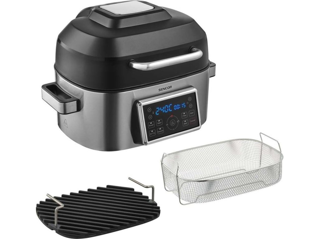 Sháníte do kuchyně nějakého univerzálního pomocníka? Přestaňte hledat a pořiďte si tuto fritézu s grilem. Tato fritéza má 7 volitelných programů: pečení, horkovzdušné pečení, sušení potravin, hranolky, hovězí maso, grilování.Sencor SBG je fritéza, hrnec i pánev v jednom s objemem 6 l, takže snadno zasytíte celou rodinu.