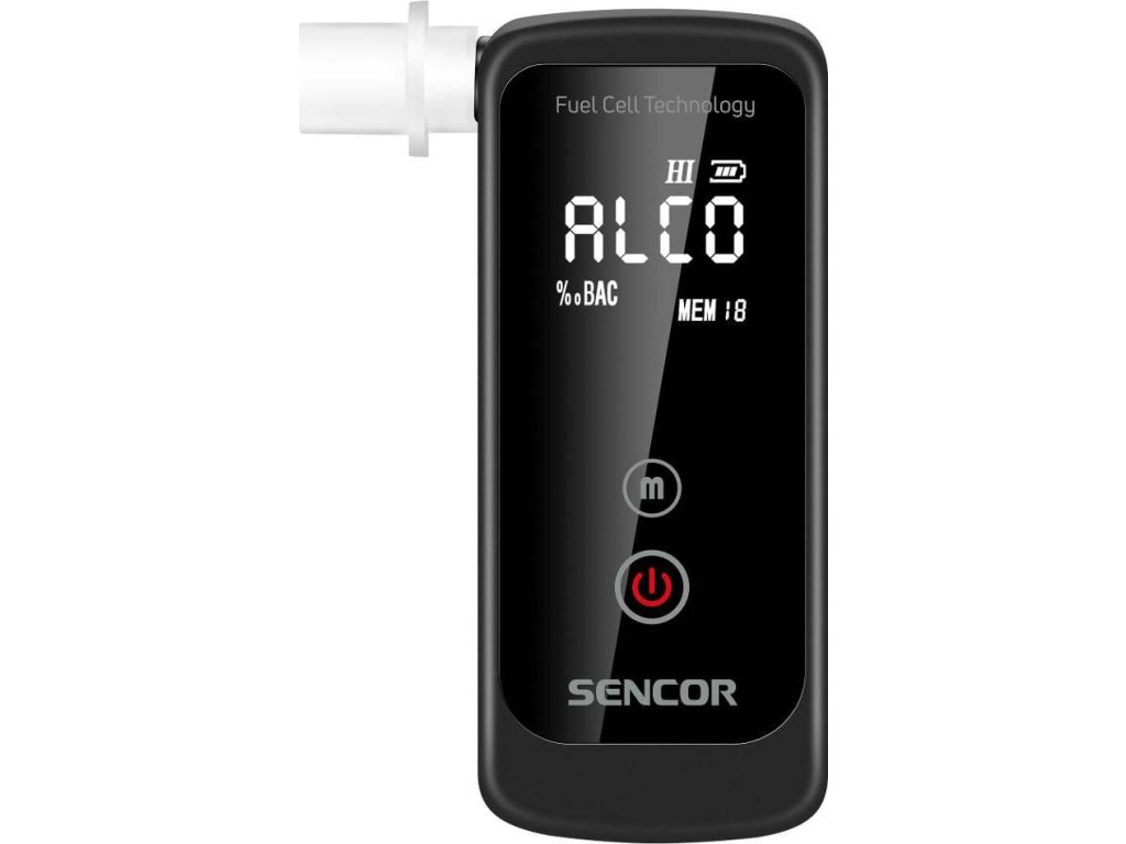Profesionální alkohol tester Sencor SCA BA40FC zjistí přesnou hodnotu alkoholu v krvi z Vašeho dechu během pár sekund. Pomocí kalibrovaného elektrochemického senzoru (Fuel Cell - palivový článek) probíhá měření alkoholu v dechu s přesností lepší než 0,008‰ BAC. Proto už se například nemusíte obávat zbytkového alkoholu, který by u Vás levné alkohol testery s polovodičovým čidlem nemusely odhalit. Široký rozsah měření od 0 do 4 ‰ BAC pokryje potřeby všech běžných uživatelů. Zařízení disponuje pamětí pro posledních 20 měření a je vybaveno dvoubarevným displejem pro optické zvýraznění překročení hodnoty alarmu. Možnost výběru jednotky měření ‰ BAC nebo mg/L a nastavení hodnoty alarmu měření. Součástí balení jsou 2 náhradní náustky.Alkohol tester s elektrochemickým senzorem (palivovým článkem)