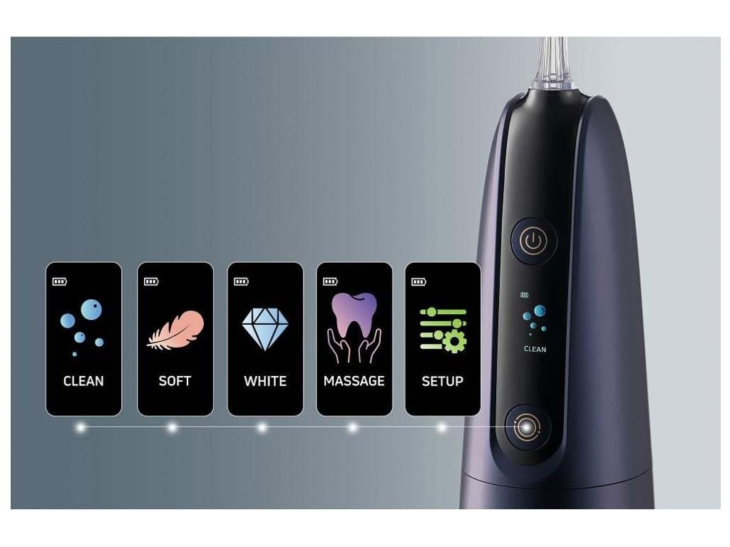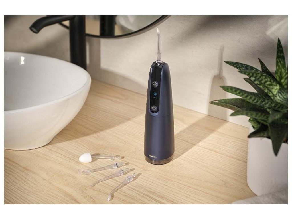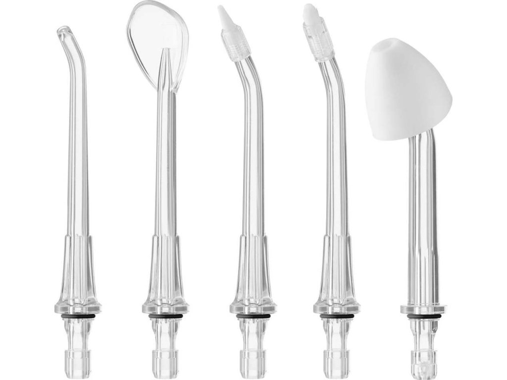 5 trysek: Standardní tryska, Kapesní tryska, Ortodontická tryska, Škrabka na jazyk, Nosní tryska