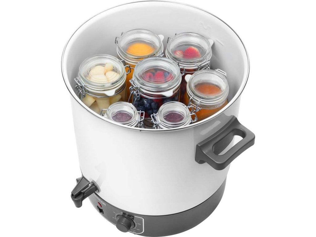 Zavařujte ovoce a zeleninu po celý rok. Společnost Sencor vytvořila zavařovací hrnec SPP 2100WH, který svým objemem 27 litrů vystačí na tvorbu až 14 litrových sklenic najednou. Marmelády, džemy, okurky a mnohé další zavařeniny proto můžete připravovat i ve velkém množství, abyste měli velké zásoby po celý rok a mohli jídlo porozdávat i rodině. Kromě samotného zavařování přístroj poslouží také k přípravě nápojů, polévek nebo omáček. Má vestavěný výtokový kohout pro snadné nalévání, abyste si mohli např. zahřát krev horkým grogem během ledových zimních večerů.Plynule regulovatelný termostat