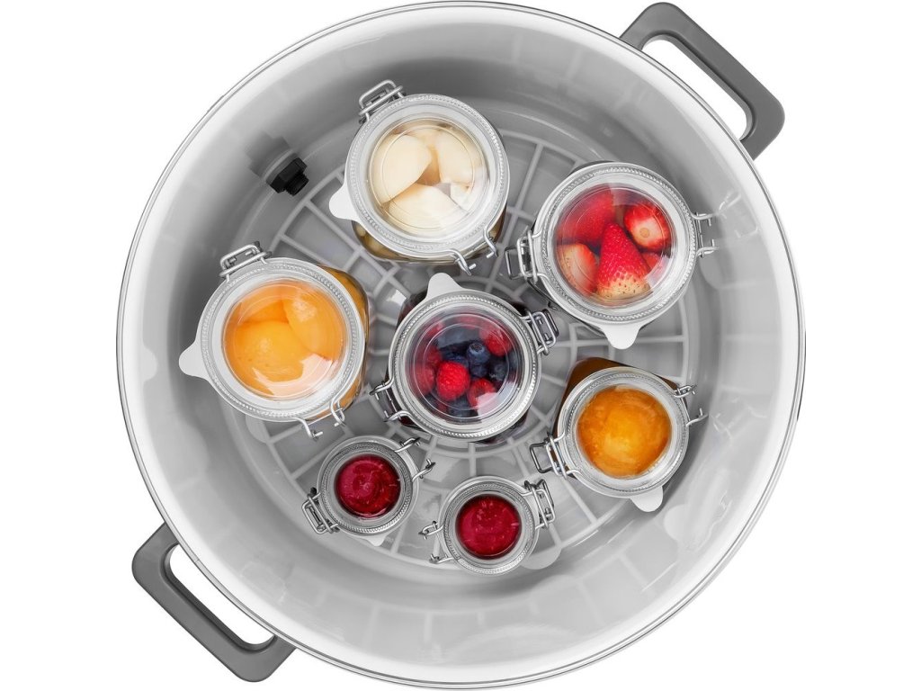Vyberte si ze dvou přednastavených zavařovacích režimů. Buď lze využít nastavitelný časový spínač a zvolit si teplotu v rozmezí od 20 do 120 minut, nebo aktivovat nepřetržitý chod. Za pomoci plynule regulovatelného termostatu můžete upravovat teplotu od 30 do 100 °C v závislosti na připravovaných zavařeninách. K bezpečnosti práce přispívají tepelně izolované rukojeti, skryté topné těleso a akustický indikátor dosažení teploty. Nechybí ani pojistka proti přehřátí a chodu naprázdno, aby bylo použití zařízení vždy maximálně bezpečné.