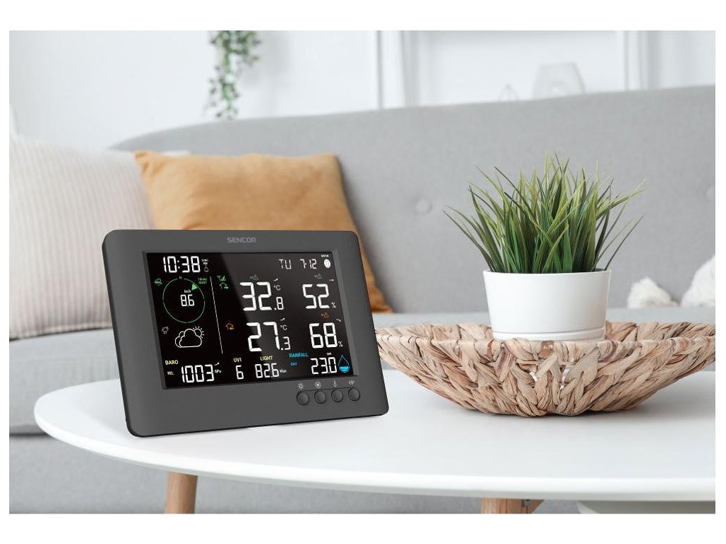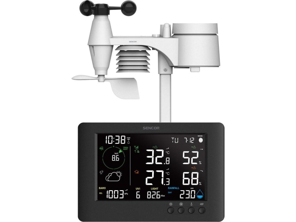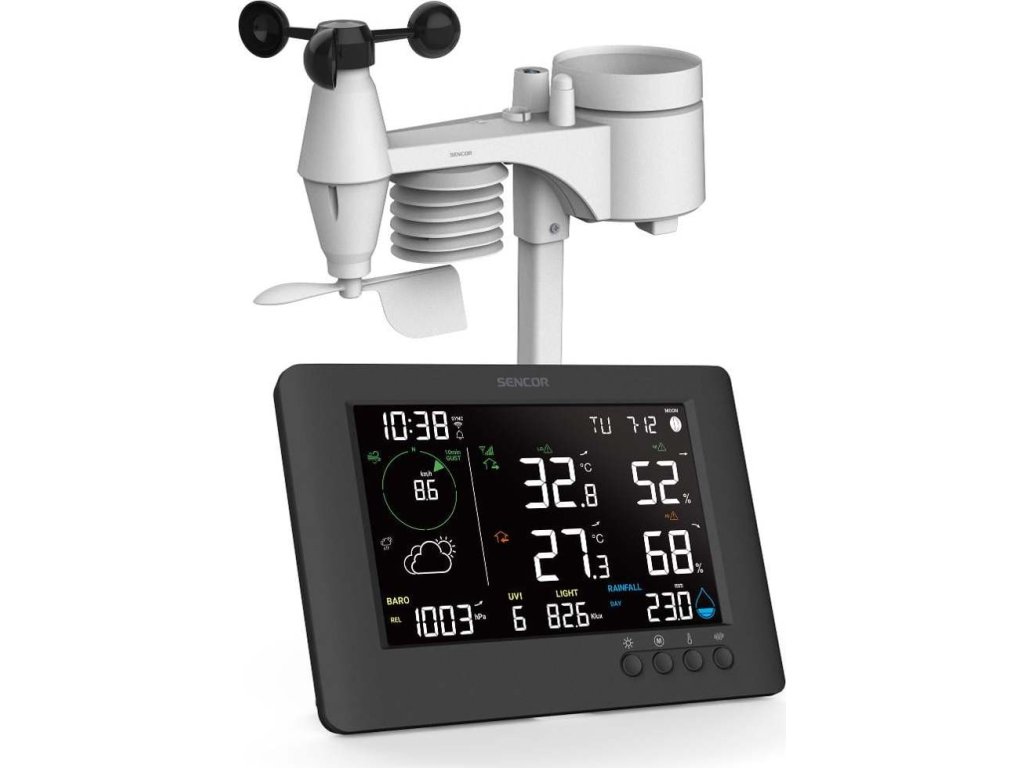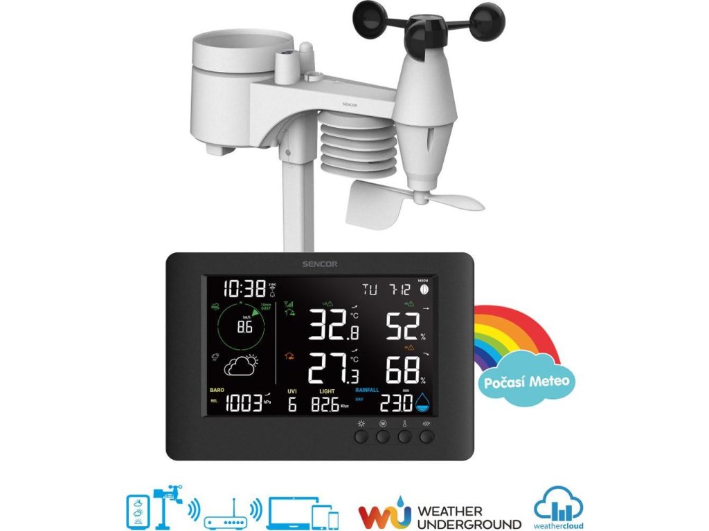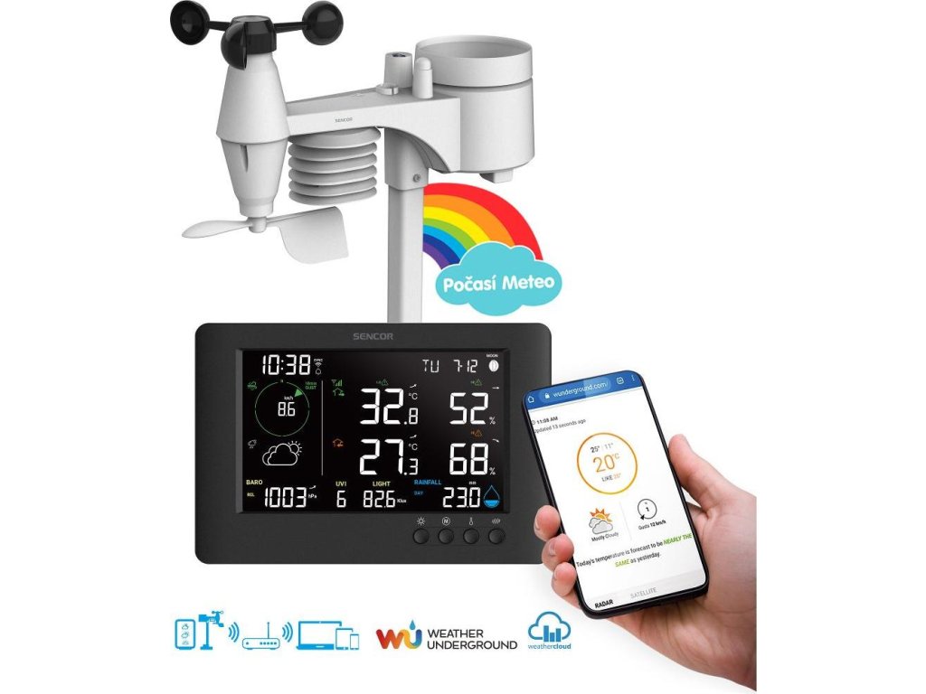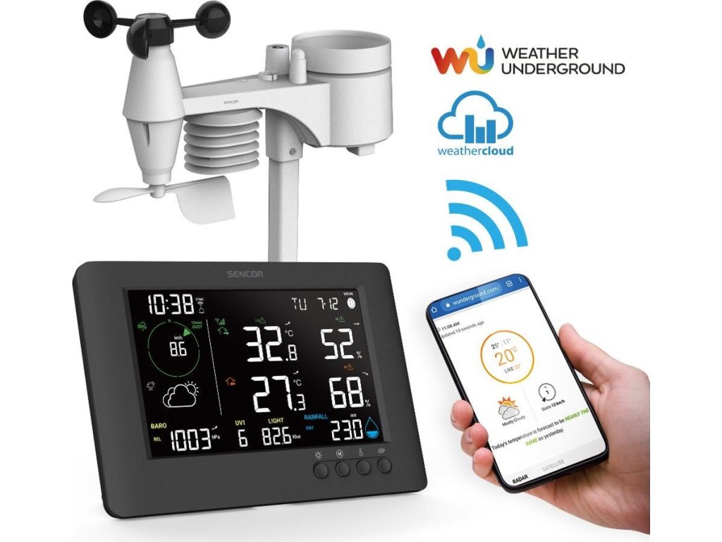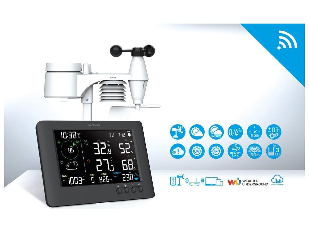 Profesionální meteorologická stanice SENCOR SWS 10500 Wi-Fi je ideální volbou pro každého, kdo chce mít přehled o počasí s profesionální přesností. Přiložený bezdrátový senzor 7v1 je vybaven švýcarskými čidly SENSIRION a měří teplotu, barometrický tlak, vlhkost, rychlost a směr větru, intenzitu srážek, UV index, a dokonce i intenzitu světla. Díky Wi-Fi připojení se data automaticky odesílají na platformy Weather Underground a Weathercloud. Můžete tak naměřené hodnoty sledovat odkudkoli prostřednictvím vašich chytrých zařízení včetně telefonu, tabletu nebo počítače. Podporovány jsou mobilní platformy iOS i Android.