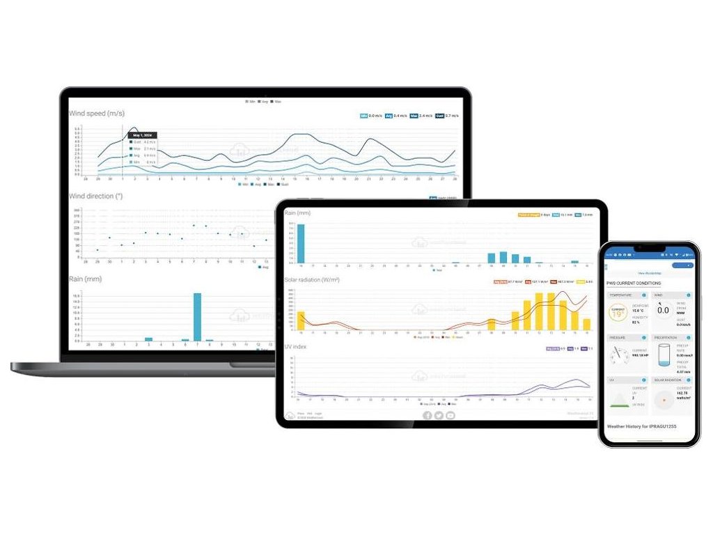 Podpora globálních veřejných meteorologických platforem Weather Underground a Weathercloud + 1 další vlastní platforma