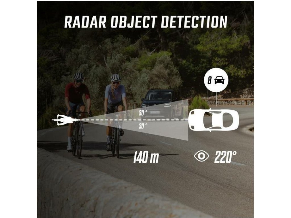 RECO 81 LINK nabízí široký úhel 60° a to zajišťuje, že vozidla jsou detekována v širokém záběru za cyklistou. Radar detekuje až 8 objektů ve vzdálenosti až 140 m. Světlo má úhel svícení 220° – pro maximální bezpečnost ve dne i v noci.
