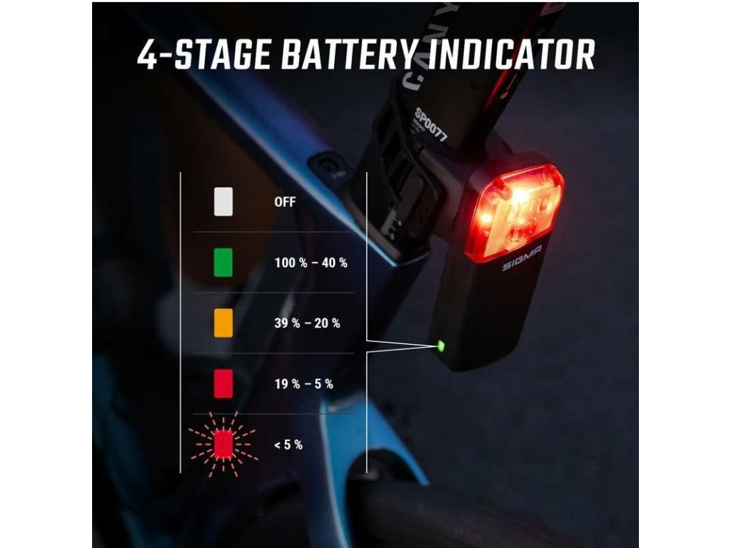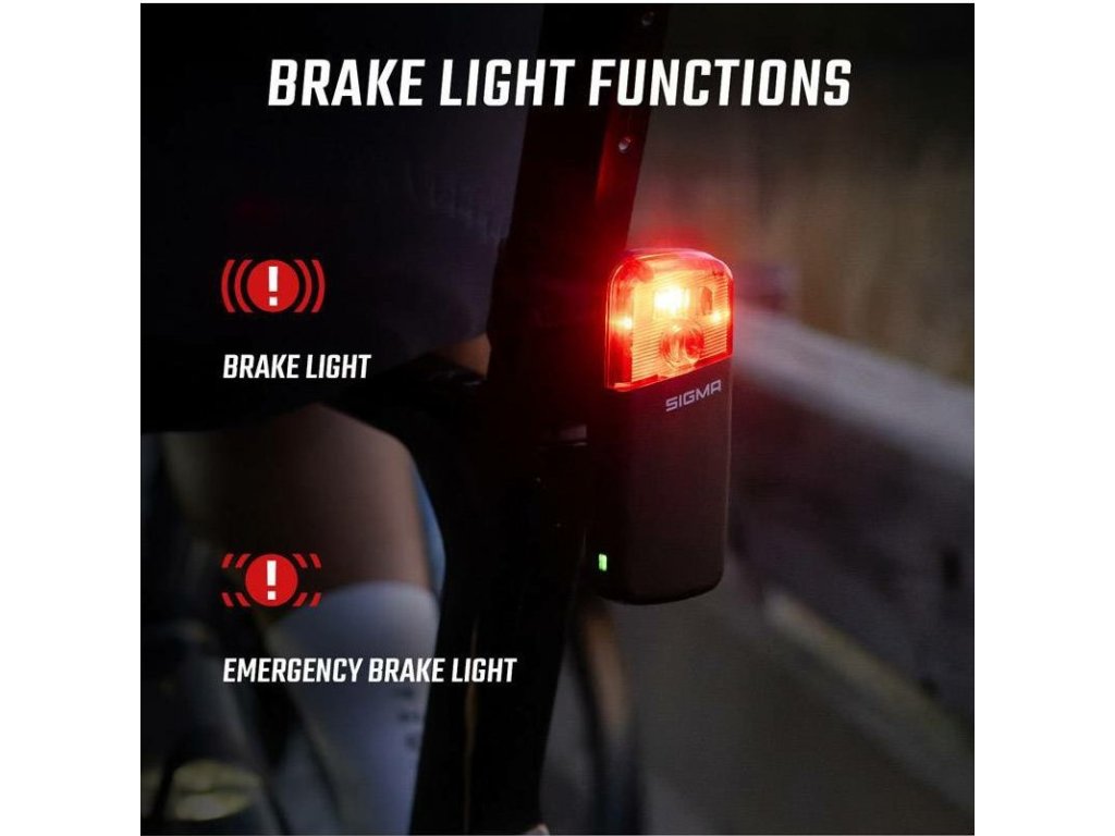 Zadní radarové světlo má integrovanou funkci LED brzdového světla a také nouzové brzdové světlo, které reaguje během zlomku sekundy. Tímto způsobem je velice dobře zabezpečena bezpečnost cyklisty.