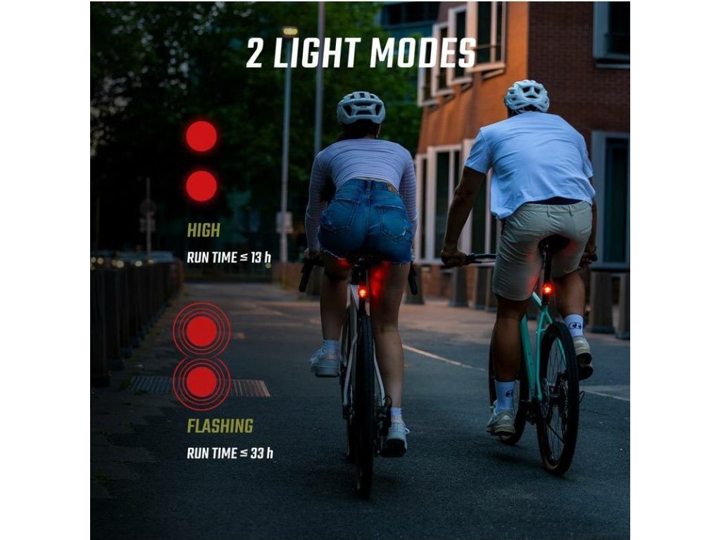 Někdy potřebujete na temných cestách plný výkon světla, jindy stačí být pouze viděn, s Buster 150 se vždy přizpůsobíte každé situaci. Máte na výběr z pěti světelných režimů, pomocí kterých můžete individuálně ovlivnit intenzitu osvětlení a dobu výdrže baterie. V režimu High dosahuje světlo Buster 150 světelného výkonu 150 lumenů po dobu až 3 hodin, v režimu Mid svítí až 7,5 hodiny při světelném výkonu 75 lumenů. A kdyby se náhodou vyjížďka protáhla, vydrží v režimu Low spolehlivě svítit až 14,5 hodin. S režimem blikání Night Flashing jste viditelní až 5 hodin, Day Flashing pak zajistí dobrou viditelnost po dobu až 25 hodin.