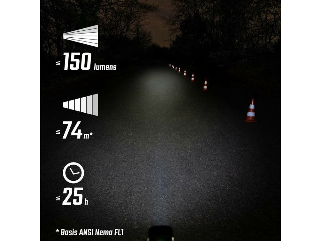 5 světelných režimů: High (150 lm), Mid (75 lm), Low (35 lm), Night Flashing (100/40 lm), Day Flashing (40 lm)