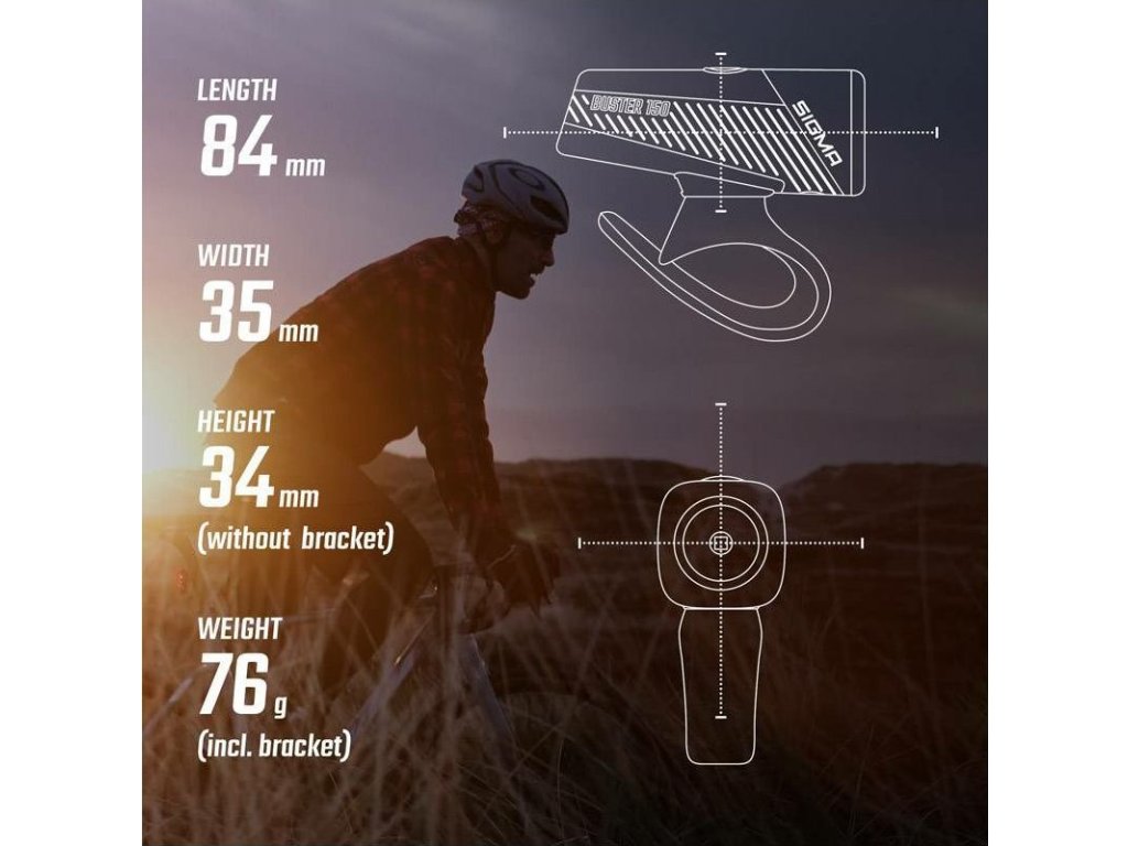 Nejmenší a nejlehčí výkonné světlo od značky Sigma váží pouhých 76 gramů. Se světelným výkonem 150 lumenů a v mimořádně kompaktním designu je světlo Buster 150 univerzálním společníkem na cesty. Dosvit až 74 metrů zajistí, že cesty i silnice budou dostatečně osvětlené. Buster 150 nabízí pět různých světelných režimů, které lze pohodlně volit pomocí přednastavených profilů. Podle potřeby si jednoduše vyberete vhodný profil a pak pouze přepínáte mezi světelnými režimy, který v aktuálním okamžiku skutečně potřebujete. Světlo je napájeno Li-Ion baterií, která zaručuje svícení až po dobu 25 hodin.