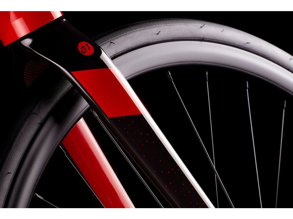 Hliníkový, 3x odlehčený rám poskytující vysokou pevnost a tuhost kombinující protahovací 12mm osy, karbonovou vidlici, hliníková kola a pohon řady SHIMANO 105 může být zrovna tím strojem, který bude na počátku Vaší závodní kariéry.