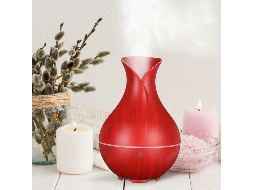 Aroma difuzer Bloom červené dřevo 200 mlIdeální doplněk do Vašich domovů, který nádherně provoní své okolí a dokáže Vám zlepšit náladu. Aroma difuzery jsou vhodné pro aromaterapii, chromoterapii, vzhledem ke svému designu jsou i stylovým interiérovým doplňkem. Tento přístroj přemění vodu na jemnou vodní páru. Přidáte-li do vody pár kapek esenciálního oleje, aroma difuzér je působením ultrazvuku rozloží na jemné mikročástice, které provoní váš byt. Aroma difuzer také neutralizuje nepříjemný zápach cigaretového kouře. Tento nejnovější model kompaktního difuzéru nevyžaduje k odpařování vatovou tyčinku.