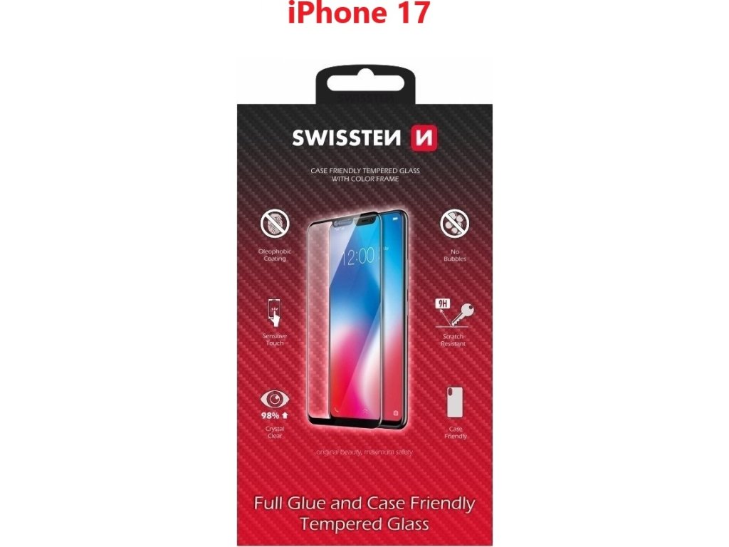 SKLO SWISSTEN FULL GLUE, COLOR FRAME, CASE FRIENDLY PRO APPLE IPHONE 17 ČERNÉ