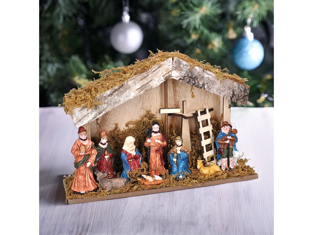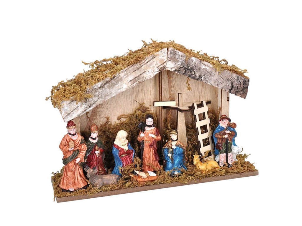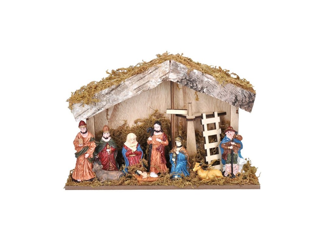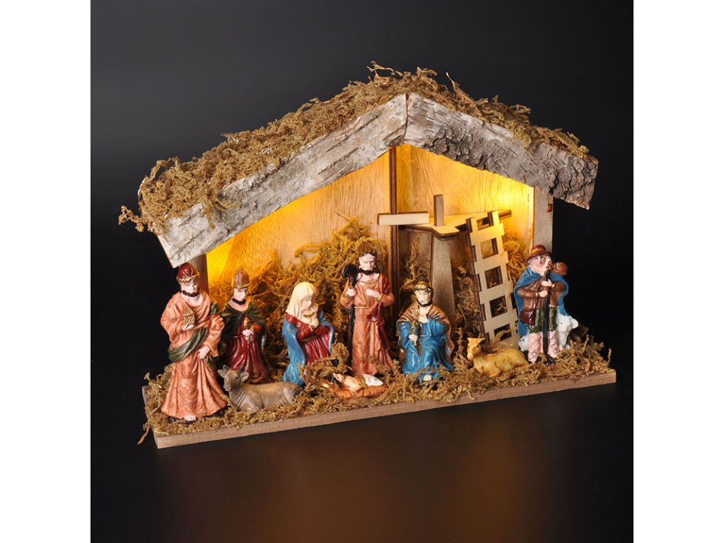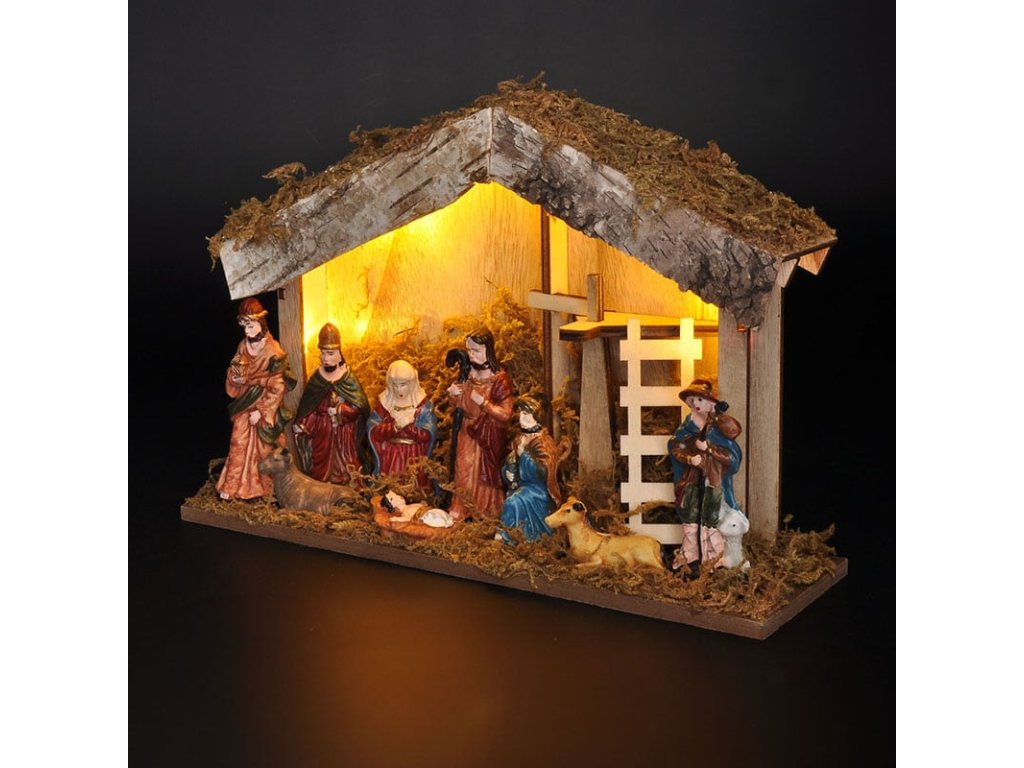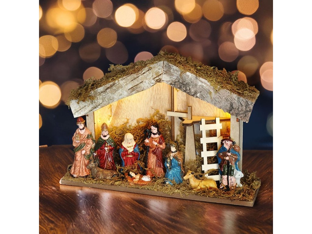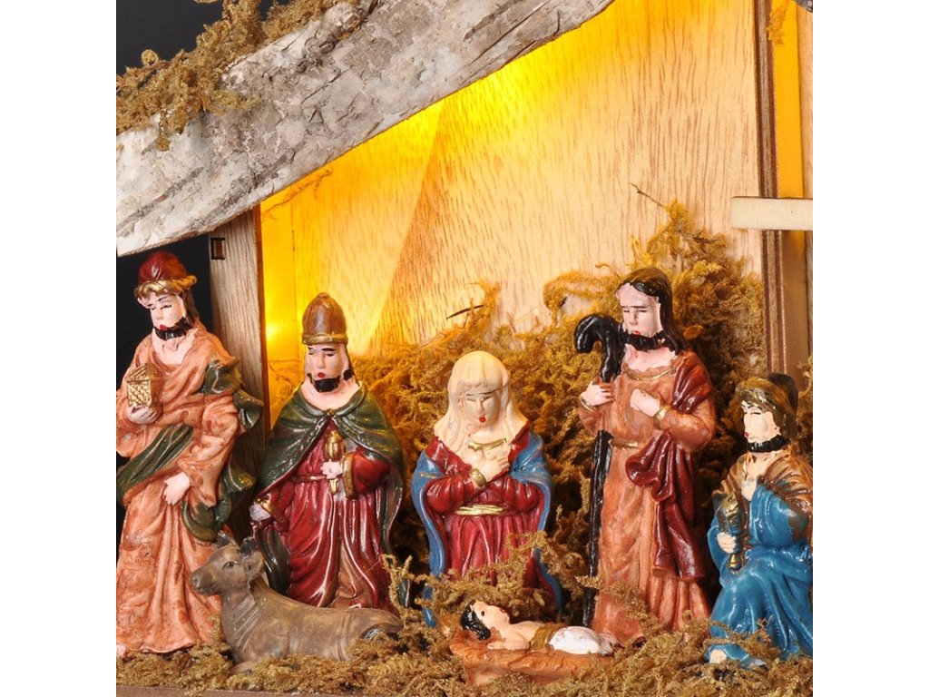 Betlém s barevnými postavičkami a teplým bílým LED osvětlením nabízí veselý a živý pohled na tradiční vánoční scénu. Šest LED diod decentně prosvětluje interiér betléma a dodává celé scéně útulné světlo. Rozměry 27 × 7 × 17 cm jsou ideální pro menší stoly, okenní parapety nebo jako součást větší dekorace.Vyroben z dřeva v přírodní barvě s barevnými akcenty, které dodávají celku hravý a poutavý vzhled. Napájení zajišťují dvě AA baterie (nejsou součástí), výdrž je přibližně 120 hodin. Ovládání nabízí tři režimy – zapnuto, vypnuto a časovač 6h/18h. Krytí IP20 určuje použití v interiéru. Skvělý dárek pro děti nebo každého, kdo miluje tradiční, ale barevně živé vánoční dekorace.