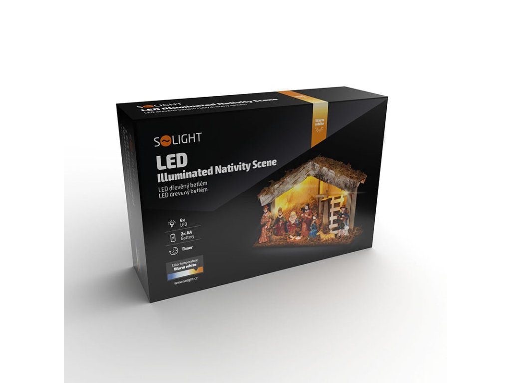 Solight LED dřevěný betlém podsvícený, 26x17cm, 6x LED, 2x AA