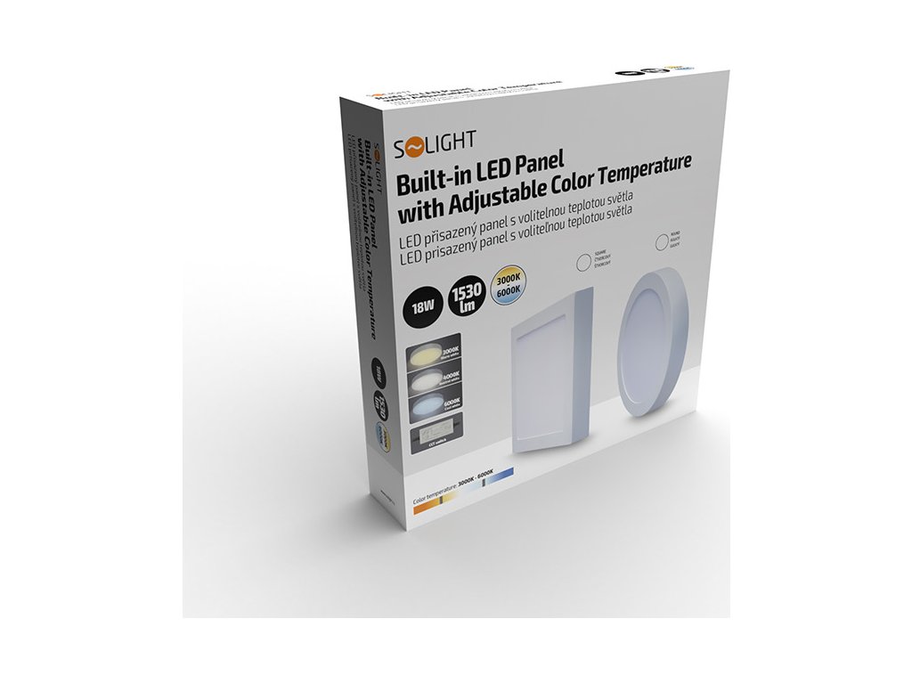 Solight LED mini panel CCT, přisazený, 18W, 1530lm, 3000K, 4000K, 6000K, čtvercový