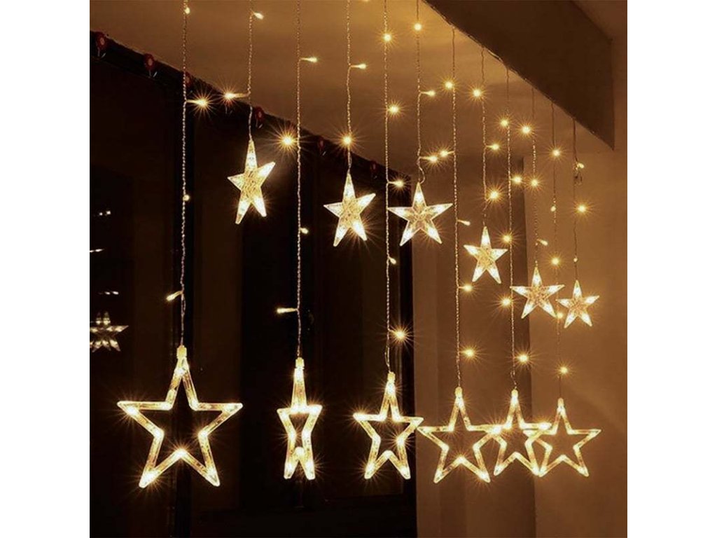 Solight LED vánoční závěs, hvězdy, šíře 1,8m, 77LED, IP20, 3xAA, USB