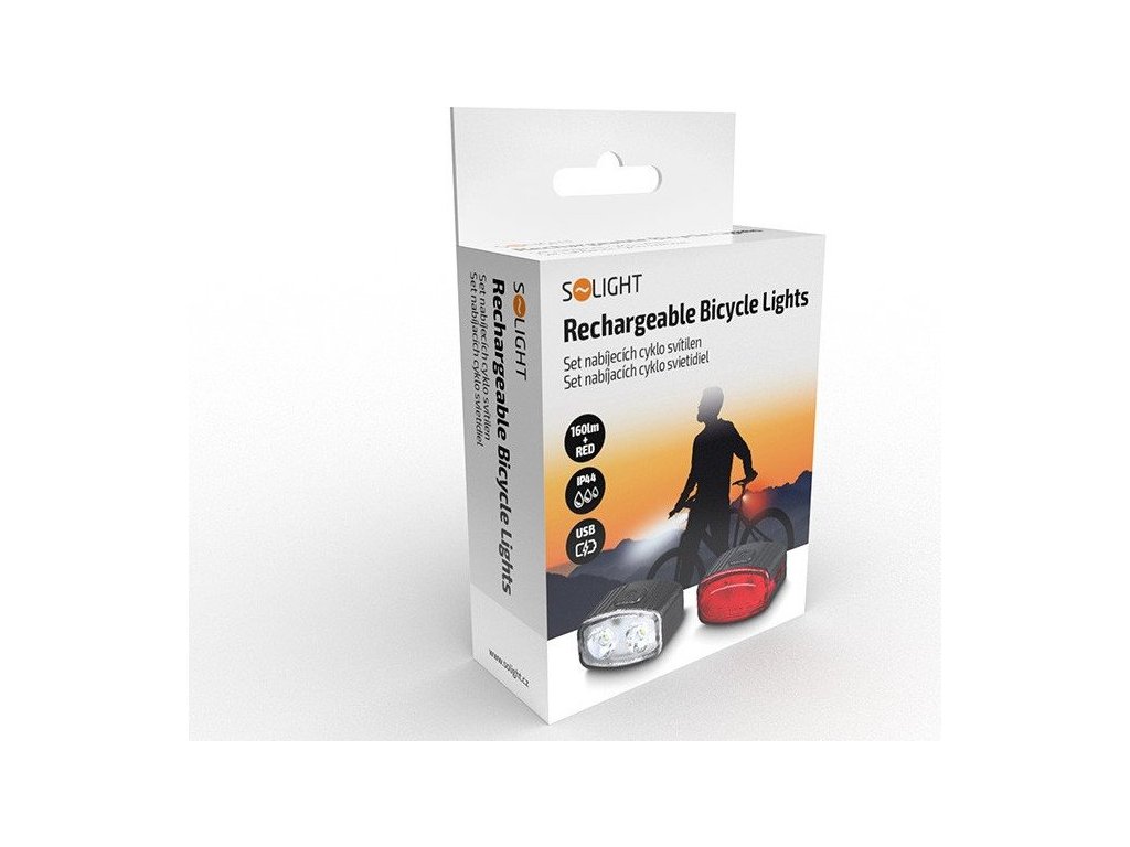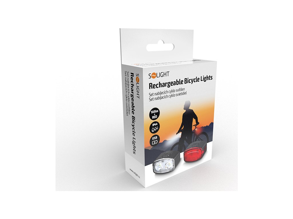 Solight set nabíjecích cyklo svítilen, 160lm přední, zadní červená, Li-Ion, USB