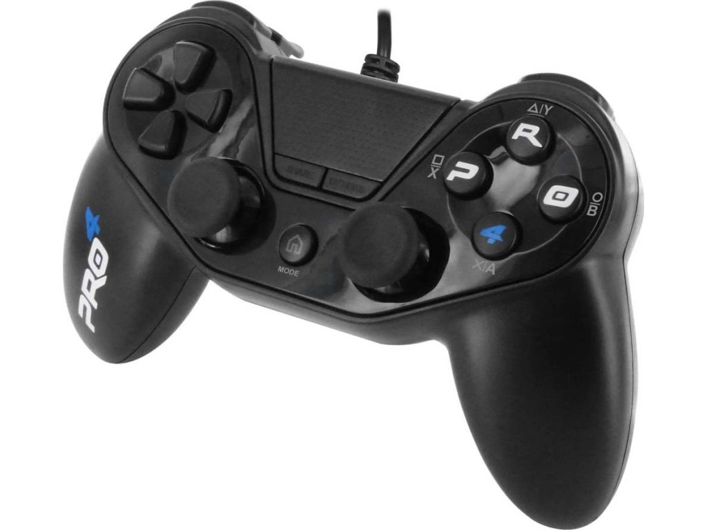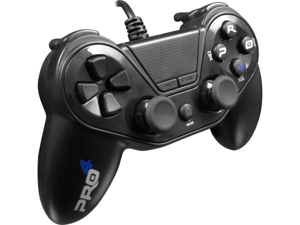 SUBSONIC Pro4 WiredDrátový ergonomický gamepad určený pro počítač nebo herní konzole PS4 a PS3. Disponuje 8směrným D-padem, klikacím předním panelem a 17 tlačítky, se kterými budete mít všechny herní funkce vždy na dosah ruky. Zaoblení analogových páček i tlačítek spouště zajistí precizní kontrolu v každé situaci. Připojení lze jednoduše realizovat pomocí USB konektoru.