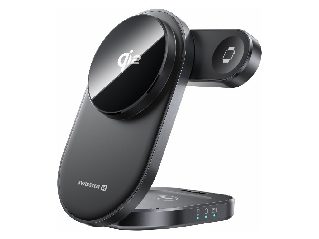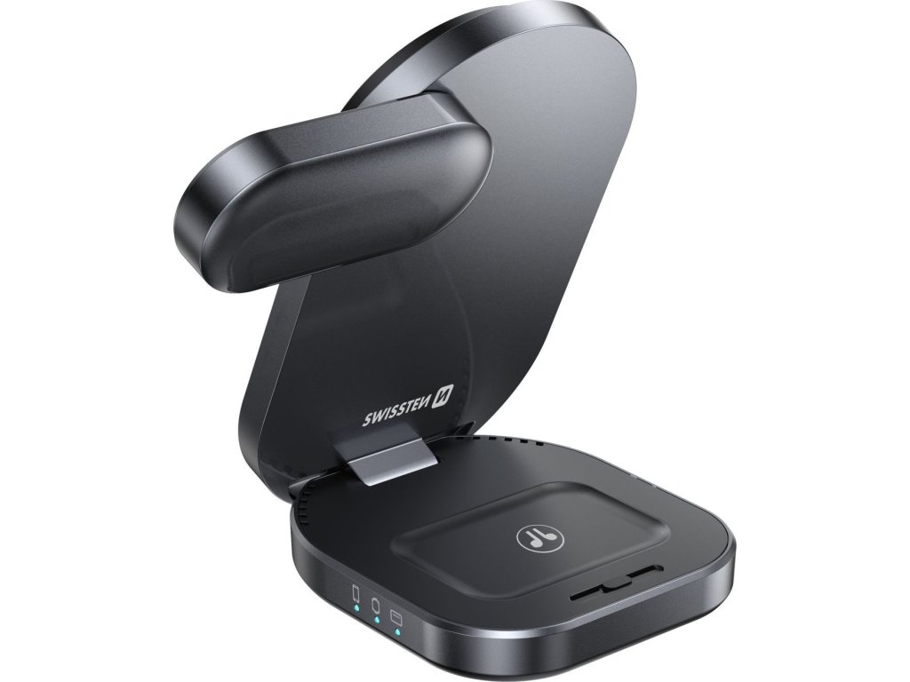 SWISSTEN SKLÁDACÍ BEZDRÁTOVÁ Qi2 NABÍJEČKA MagBase 3v1 ČERNÁ (kompatibilní s MagSafe)