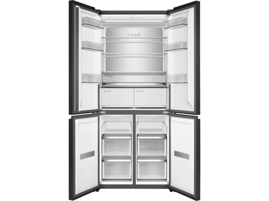 Americká lednice - čtyřdveřová, energetická třída E, objem ledničky 312 l, objem mrazáku 144 l, 2 police, 6 přihrádek v mrazáku, 1 chladicí okruh, rozměry 190 × 83,3 × 58 cm (V׊×H)Free Built-IN