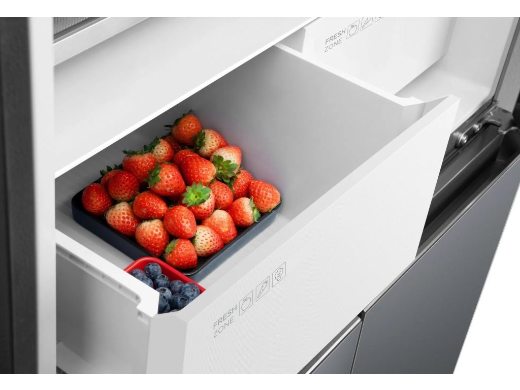 Elektronický procesor chladničky zajišťuje efektivní chlazení a stabilní teplotu v jednotlivých zónách. Nepřetržitě sleduje teplotní údaje z různých částí a přizpůsobuje činnost invertorového kompresoru, aby udržel optimální teplotu. Díky tomu jsou potraviny uchovávány při správné teplotě, což prodlužuje jejich trvanlivost a zachovává jejich kvalitu.
