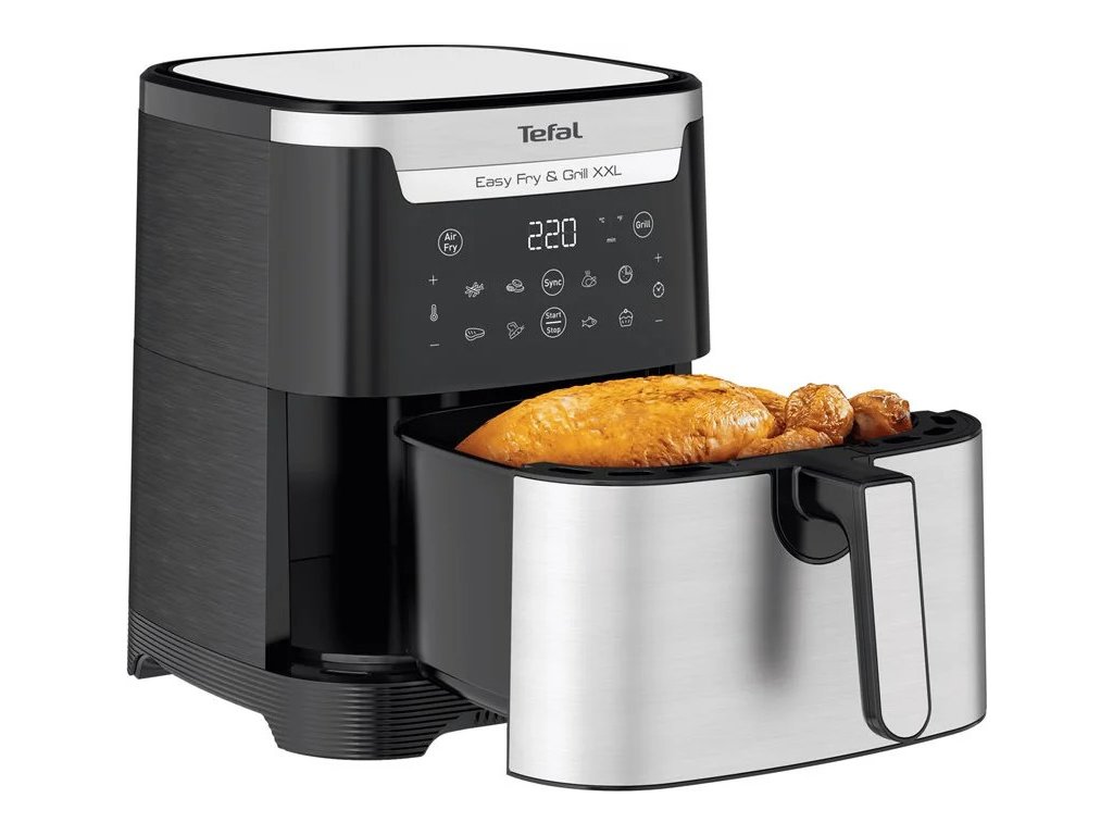 Máte velkou rodinu a fritézy se standardní kapacitou vám nestačí? Chcete si ušetřit čas a připravit maso i přílohu najednou? Vsaďte na novou horkovzdušnou fritézu Tefal Easy Fry & Gril 2v1 Inox EY801D15 s XXL objemem a oddělovací přepážkou Flexcook, díky které můžete vařit dva pokrmy v jeden čas.