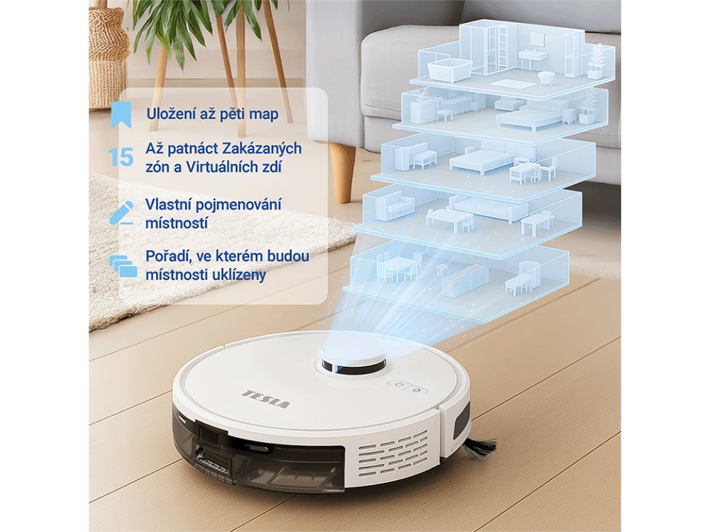 " paměť pro uložení až 5 map, ideální řešení pro vícepatrové domy a více vysávaných prostorů