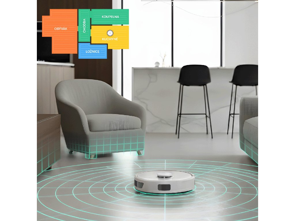 Po každém úklidu vygeneruje robotický vysavač mapu, kterou si můžete uložit. V těchto mapách je možné vytvořit "Zakázané zóny" nebo "Virtuální zeď" pro oblast, ve které nechcete, aby robotický vysavač uklízel nebo vytíral vodou. Podporuje vícepatrové mapování, které mu umožňuje zapamatovat si až 5 map a je tak ideálním řešením pro patrové domy. Robotický vysavač se dokonale přizpůsobí všem vašim požadavkům na úklid. Samozřejmě jej můžete také poslat uklízet specifické místo, které mu vyberete na mapě.