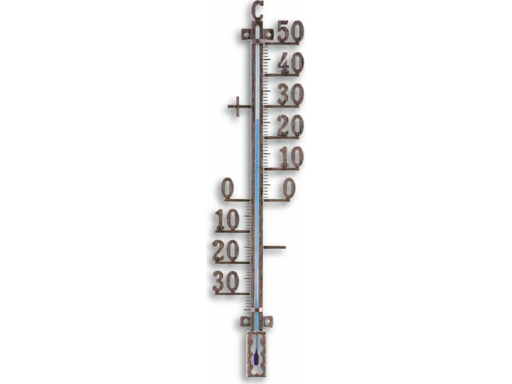 Kovový závěsný designově velmi pěkně zpracovaný kapalinový teploměr je vhodný pro rychlé a pohodlné čtení venkovní teploty ve vstupním prostoru, na balkóně nebo na terase. Součástí je instalační sada. Teploměr je vyroben v Německu. Díky 2-bodové výrobní kalibraci je velmi přesný. Kapilára je naplněna speciálně zbarvenou kapalinou.Technické informace