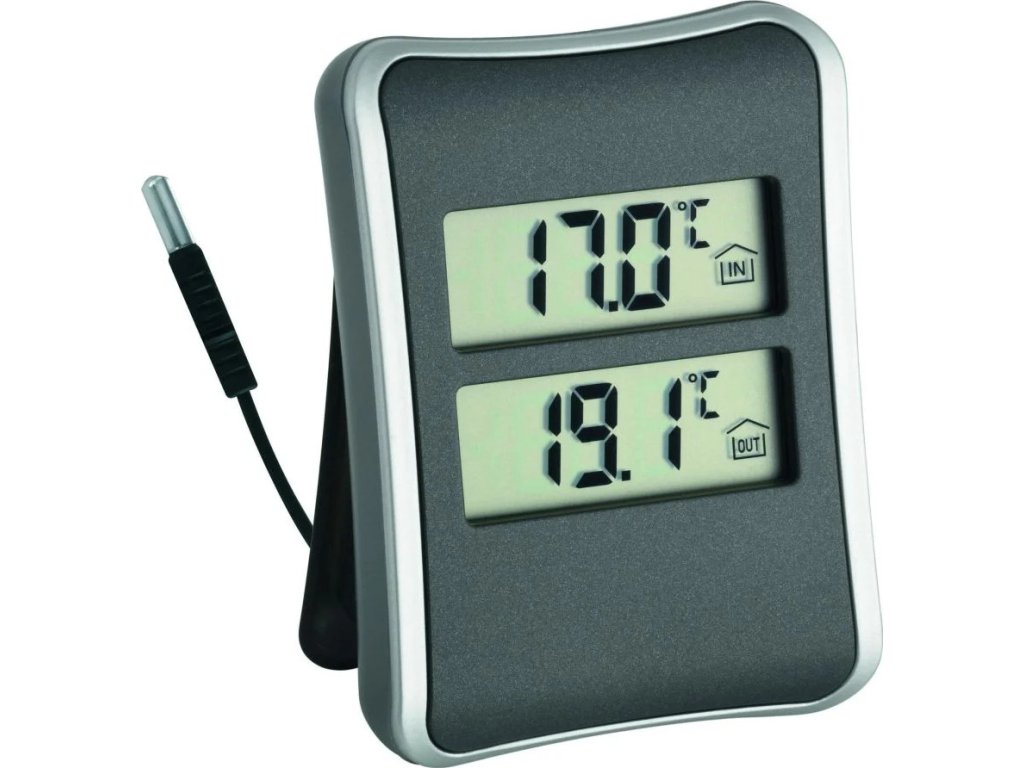 Digitální teploměr vnitřní a venkovní teploty s pamětí pro MAX/MIN teplotu. Čidlo pro venkovní teplotu je umístěno na přívodním kabelu dlouhém cca 1,5m. Maximální a minimální teploty se měří od posledního ručního vyresetování.Vlastnosti a funkce