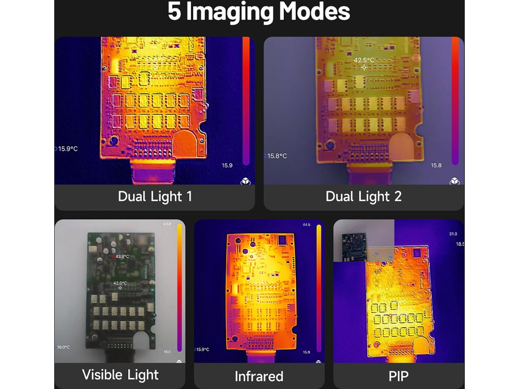 Více režimů zobrazení: termální obraz, viditelný obraz, kombinované režimy a PIP (Picture-in-Picture)