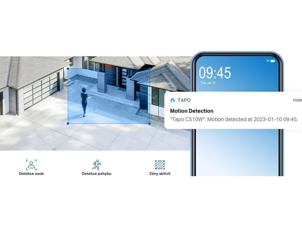 Detekce osob a sledování pohybu - s využitím umělé inteligence dokáže rozpoznat osoby a v případě potřeby vás upozornit. Můžete si také nastavit vlastní zóny aktivity, nebo hranice, abyste dostávali pouze relevantní upozornění