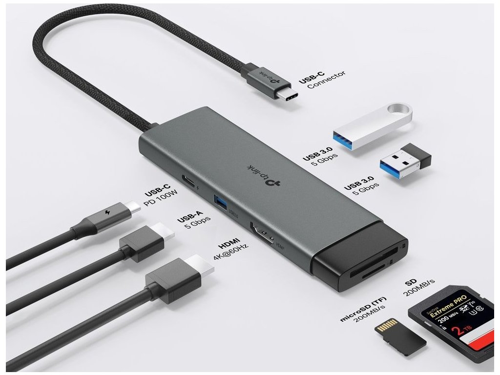 TP-Link UH7021C Dokovací stanice 7v1, USB-C, 4K, 100W
